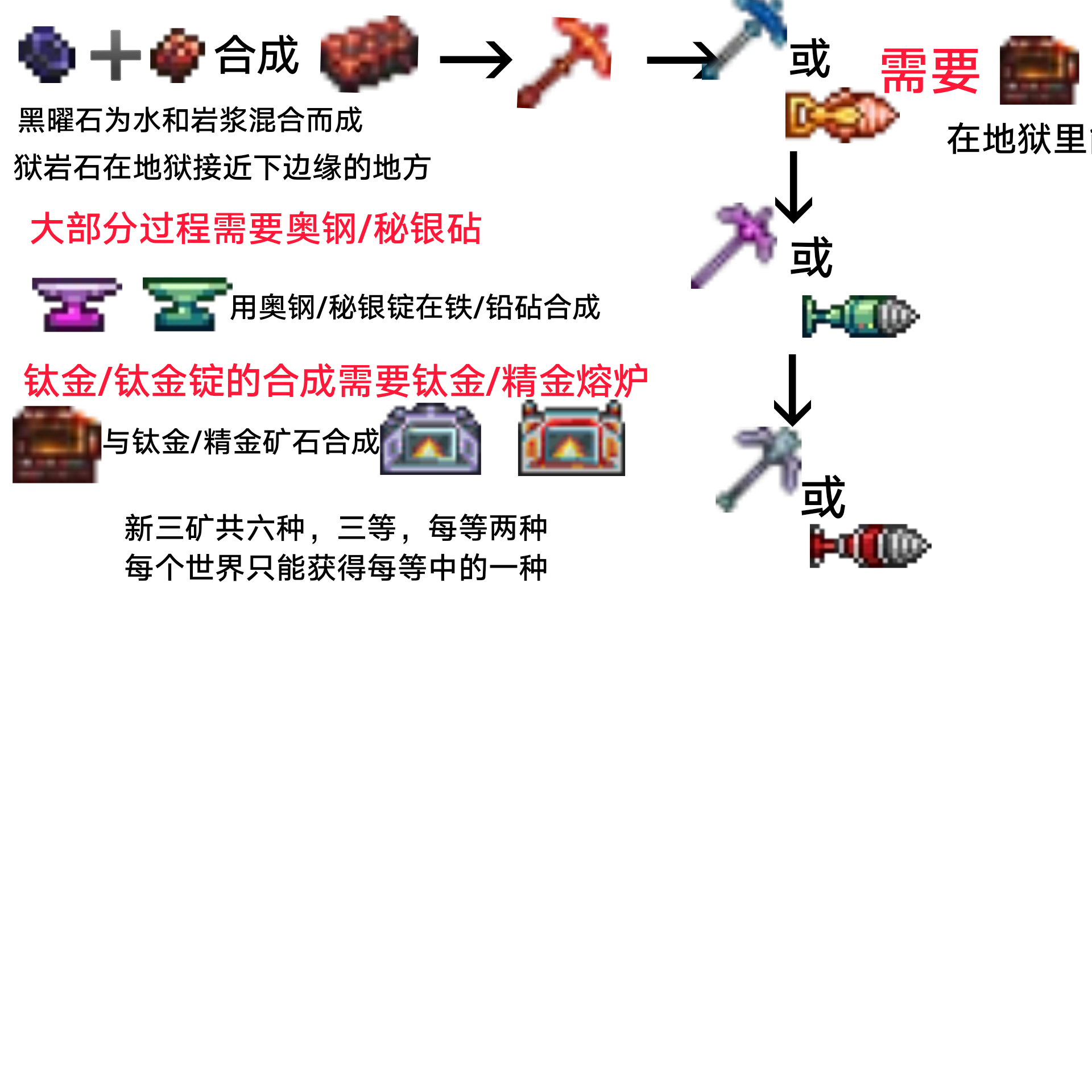 3.魔金锭/血金锭,地下少量生成矿脉,击败克苏鲁之眼,世界吞噬者/克苏鲁之脑掉落