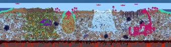 ●大部分的世界都刷了油漆:地牢是深粉色;生命树、金字塔和漂浮岛上的云是粉色;丛林神庙的图格是紫色,墙是蓝绿色;所有沙块、草、地表物体是蓝绿色。