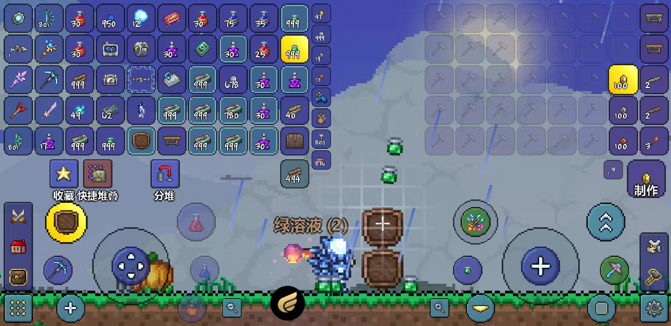 然后准备两个你要刷的东西,点上面的物品框,就能无限复制