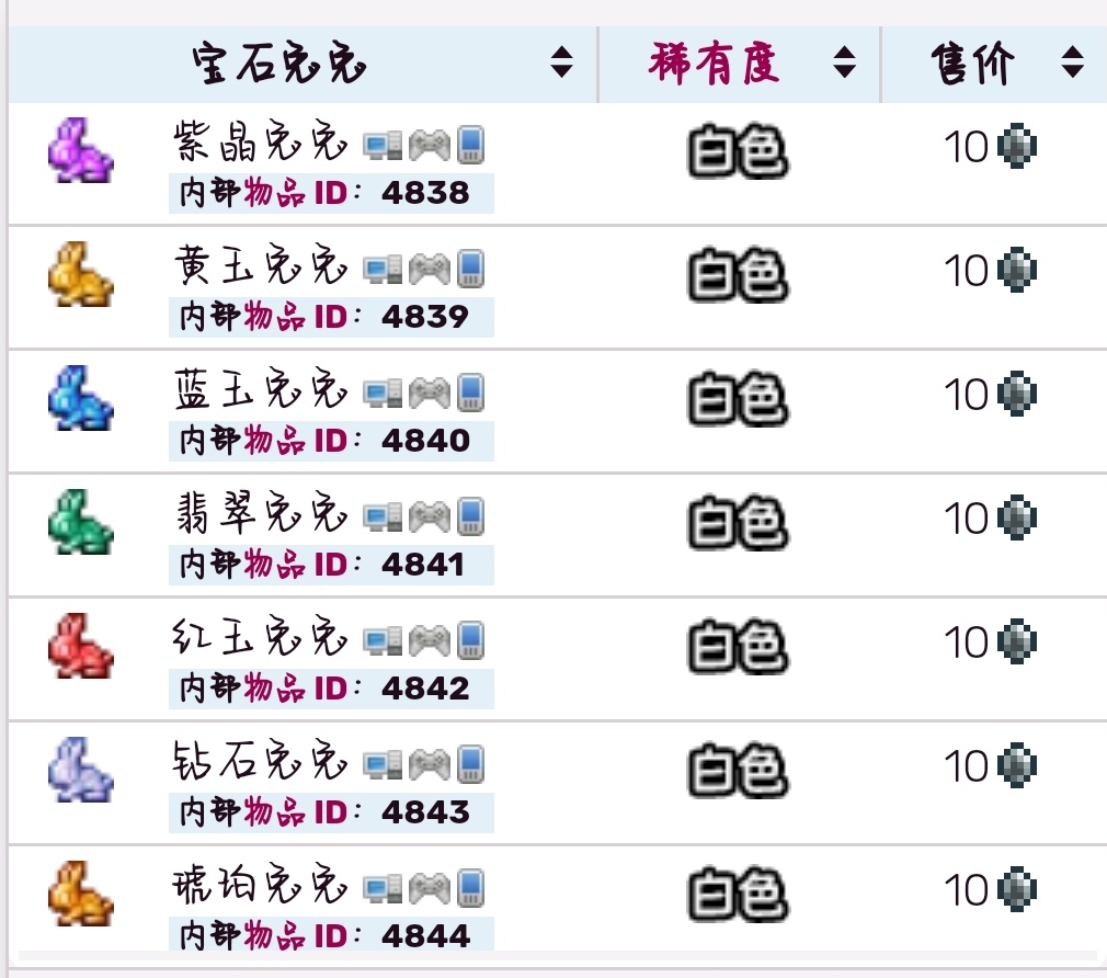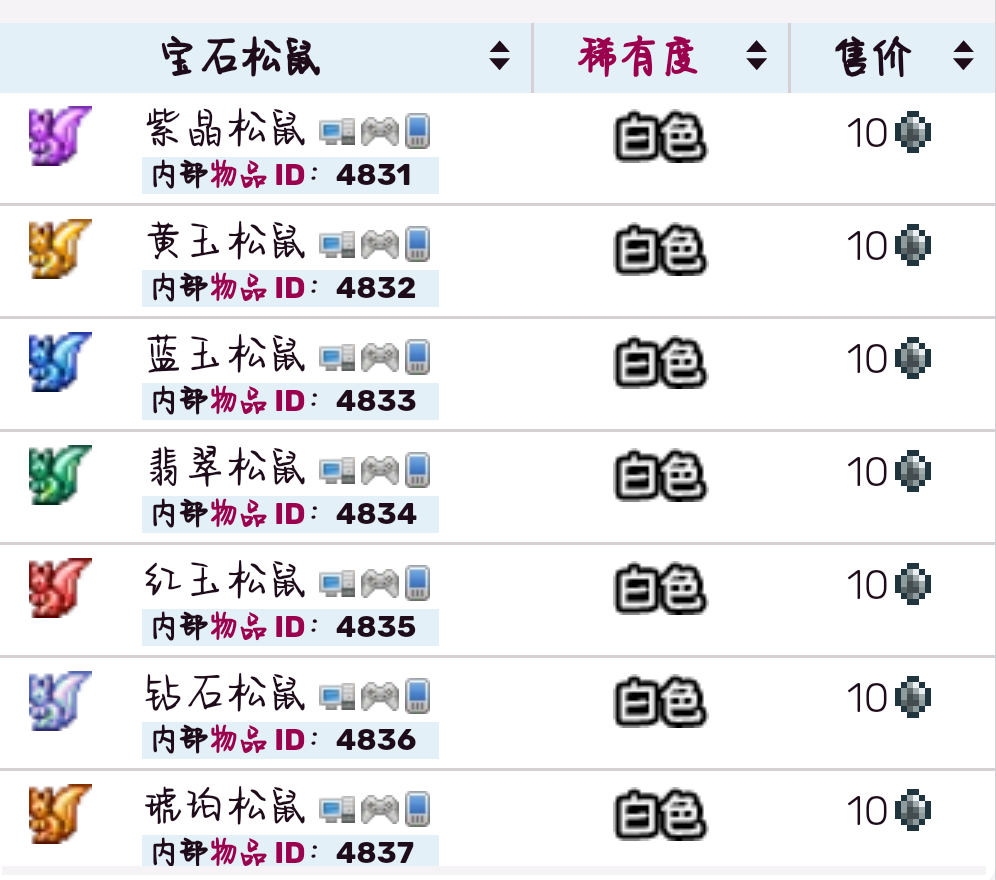 生成一些宝石兔兔(宝石松鼠)的最好方法是在洞穴层里建一个城镇。它们倾向于在NPC身边生成,特别是城镇NPC,但是也可能在骷髅商人或被束缚的NPC附近生成。