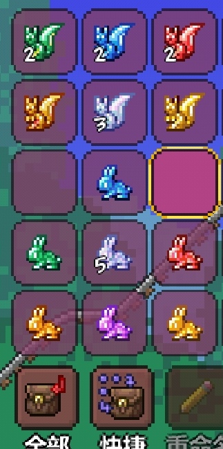 大多数自然生成的宝石兔兔(宝石松鼠)都可以用虫网捕捉,并会存储在玩家的物品栏中(或放置在收纳中)。如果在物品栏中"使用"(放置)了被虫网捕捉的宝石兔兔(宝石松鼠),它将被再次释放到光标所在的环境中,并像往常一样。