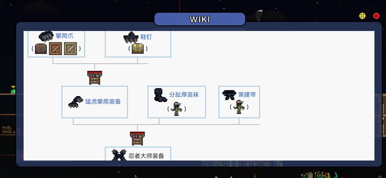 第二个饰品忍者大师装备作用是可以爬墙冲刺,加11%闪避赌狗必备,下面看合成配方,下面的两个怪是肉后地牢里面的。