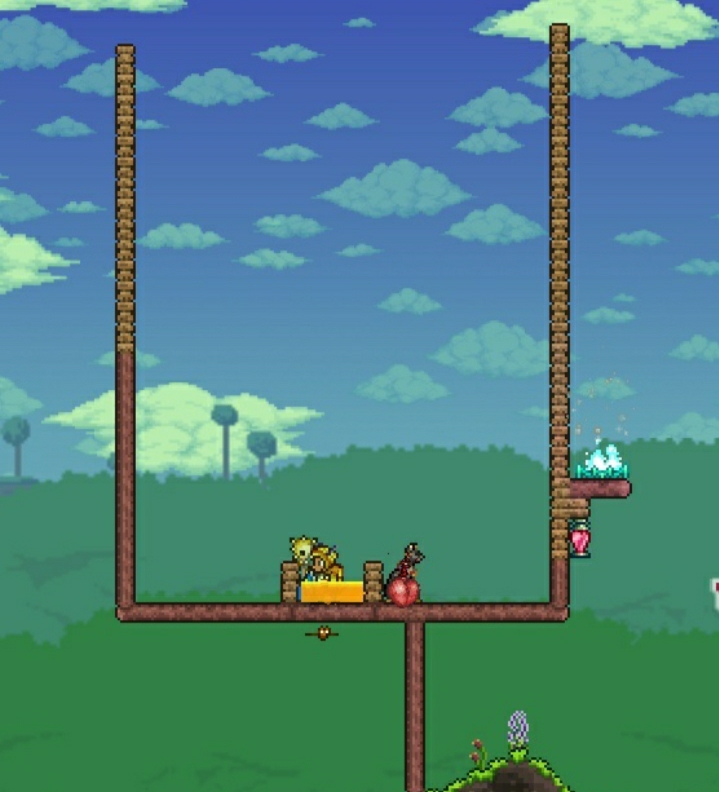 我们没有防止击退的钴护盾,所以记得用抓钩把自己在蜜蜂池里抓牢。