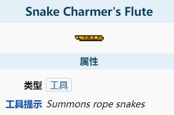 使用后,会出现一个坛子,并从中伸出一条向上伸长的蛇,一旦蛇达到了80格的限制或头碰到了一个物块,它就会停止伸长并可供攀爬