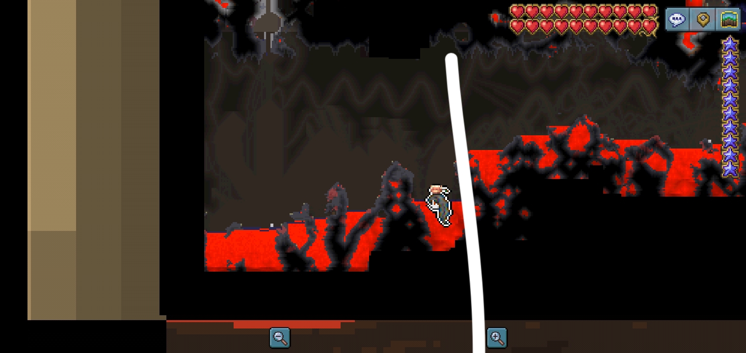 整个海的海水大概只流到了白条标记的地方,因为从这往右岩浆表面就没有黑曜石了。
