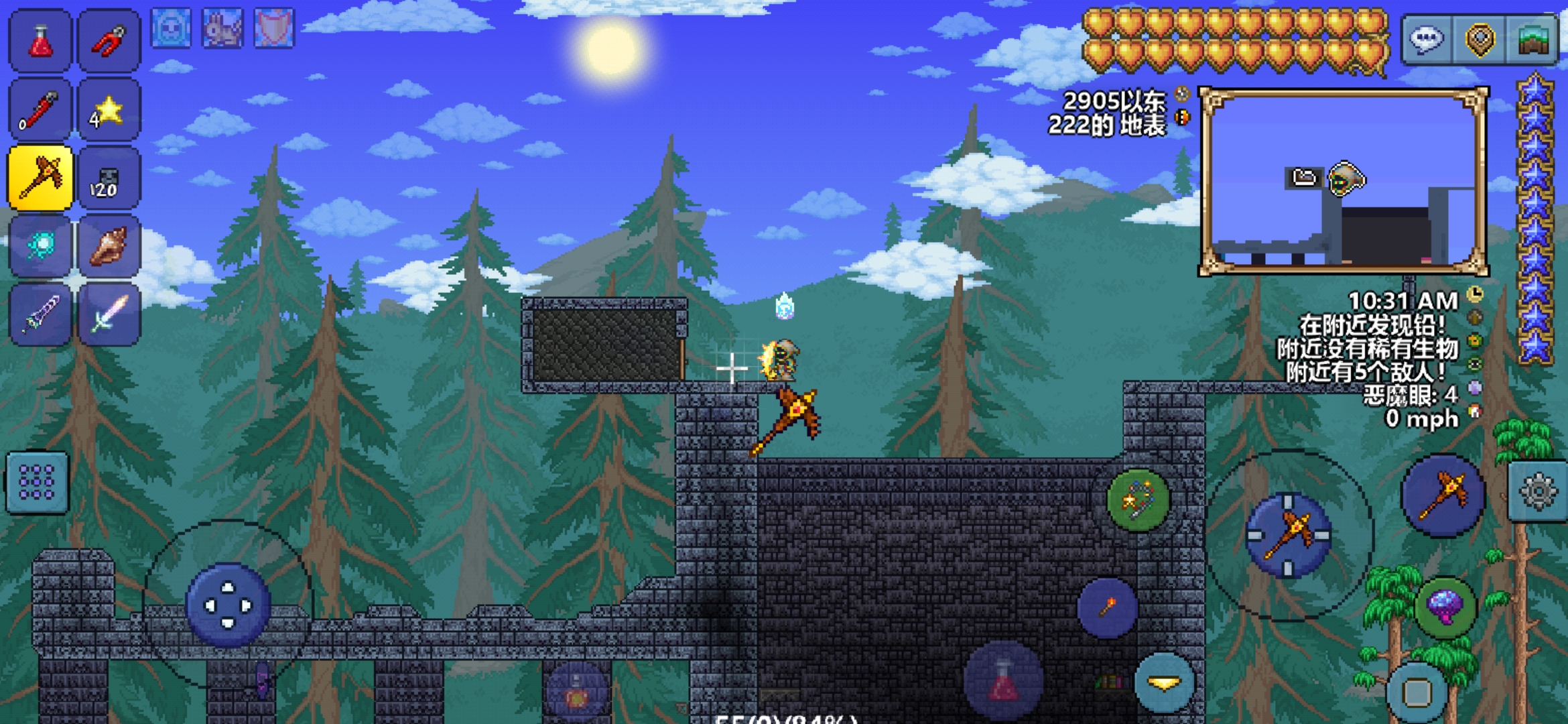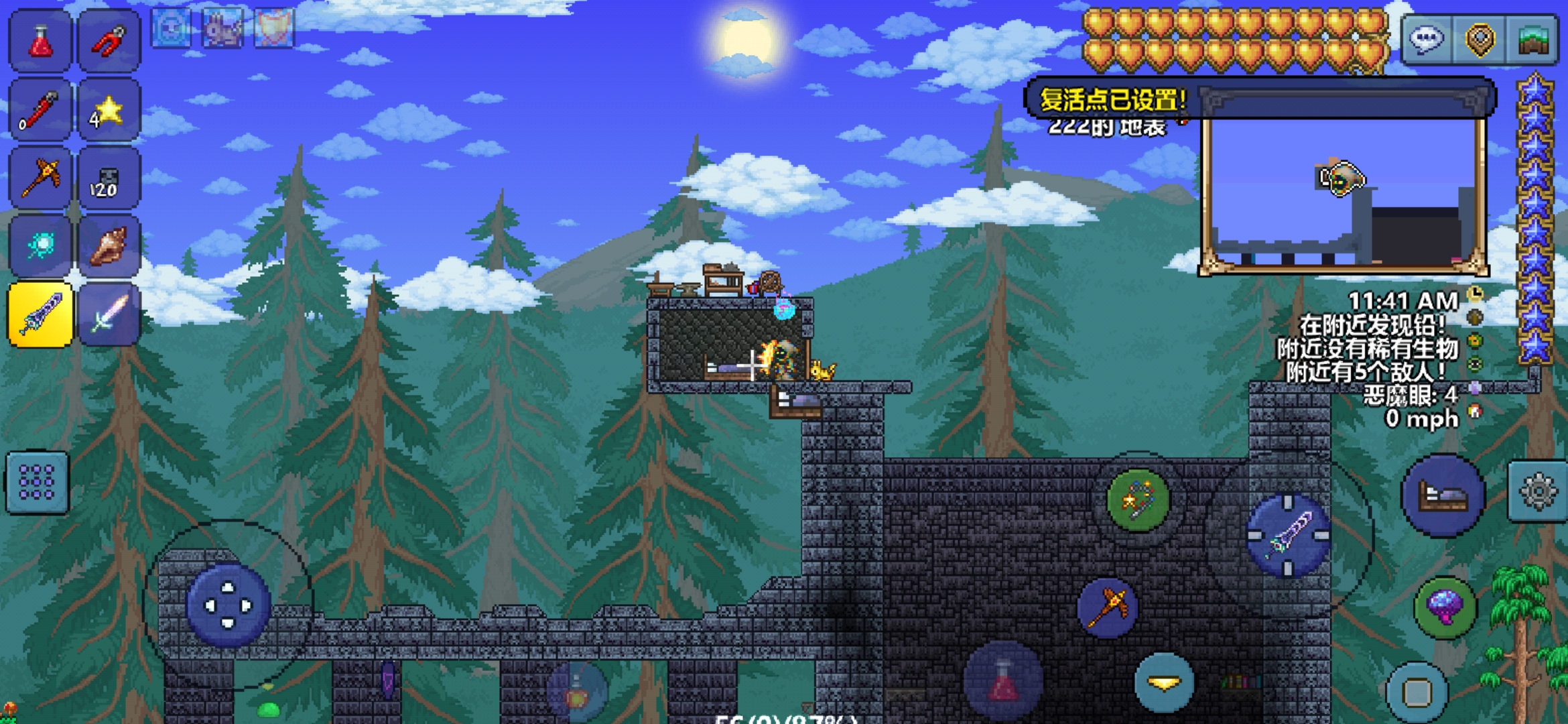 ④引怪:进入地牢,等到高度显示在地下1~10米(或者听到boss出场的嗷嗷声)时迅速用魔镜回城,然后踩在传送机上自动传送