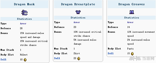 巨龙套装是手机版和主机版的独占装备,它包括头盔、胸甲和护腿。