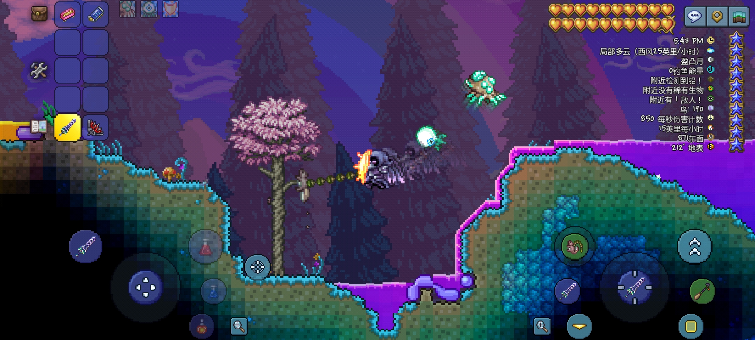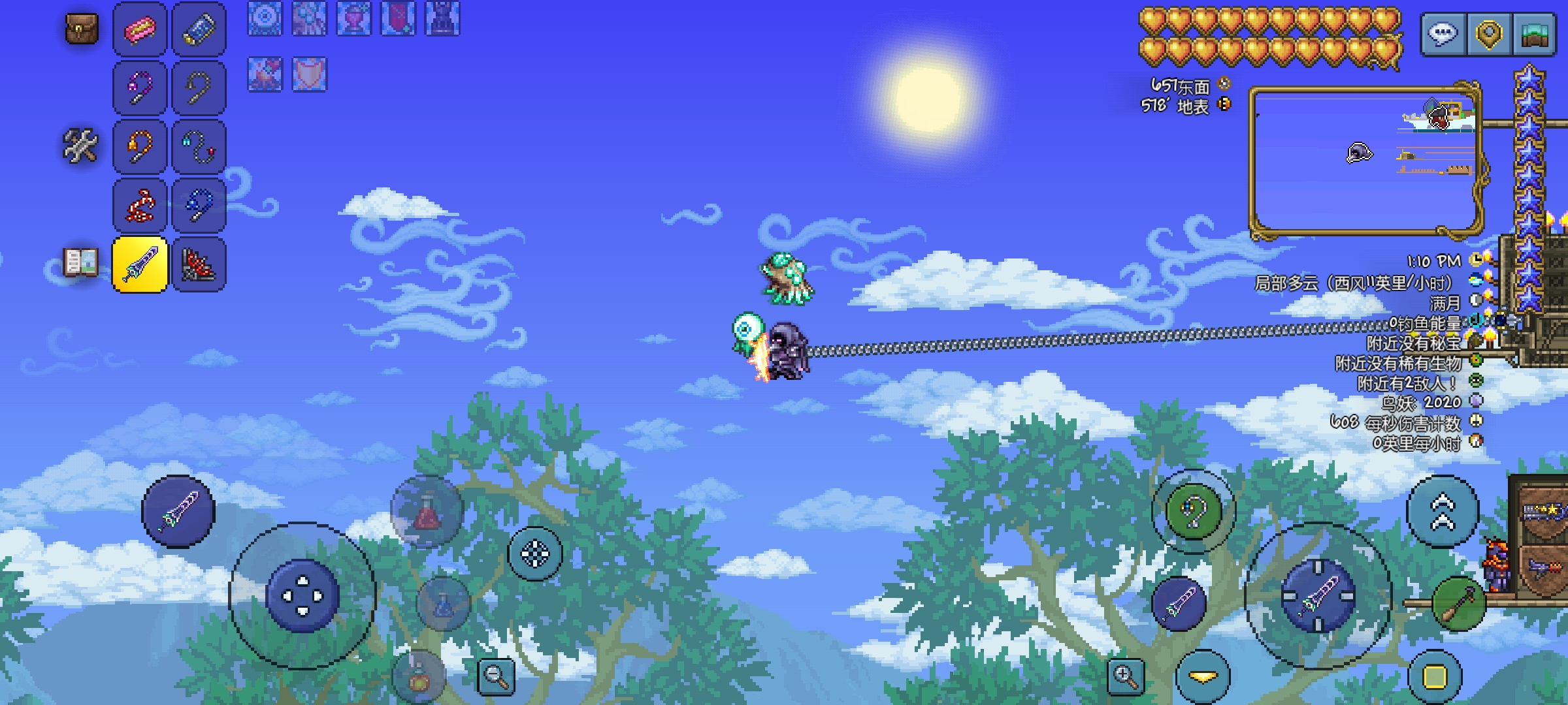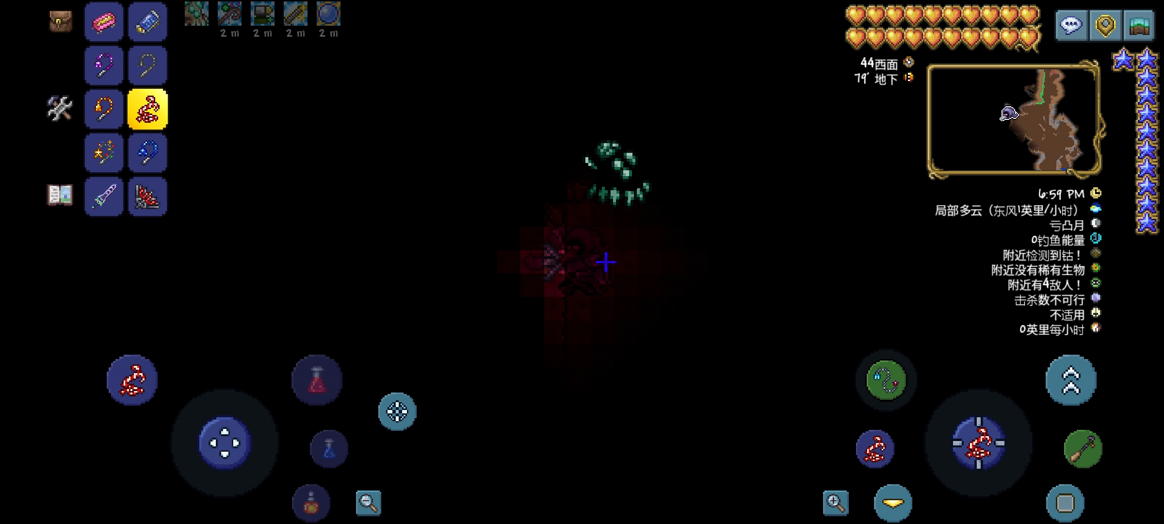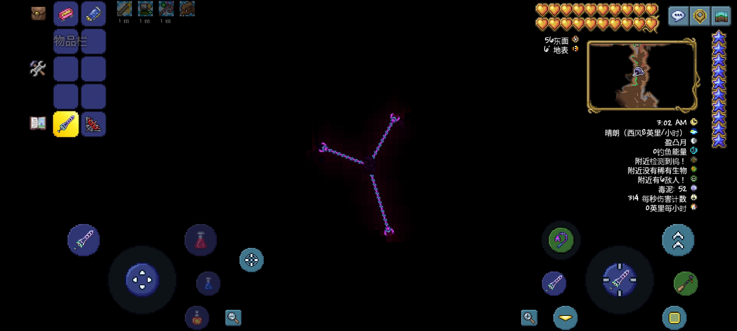 9.反重力钩:神奇的钩子,玩家勾住物块以后,可以绕着物块转圈圈,停留位置取决于移动轮盘所指方位,并且此钩也有照明效果