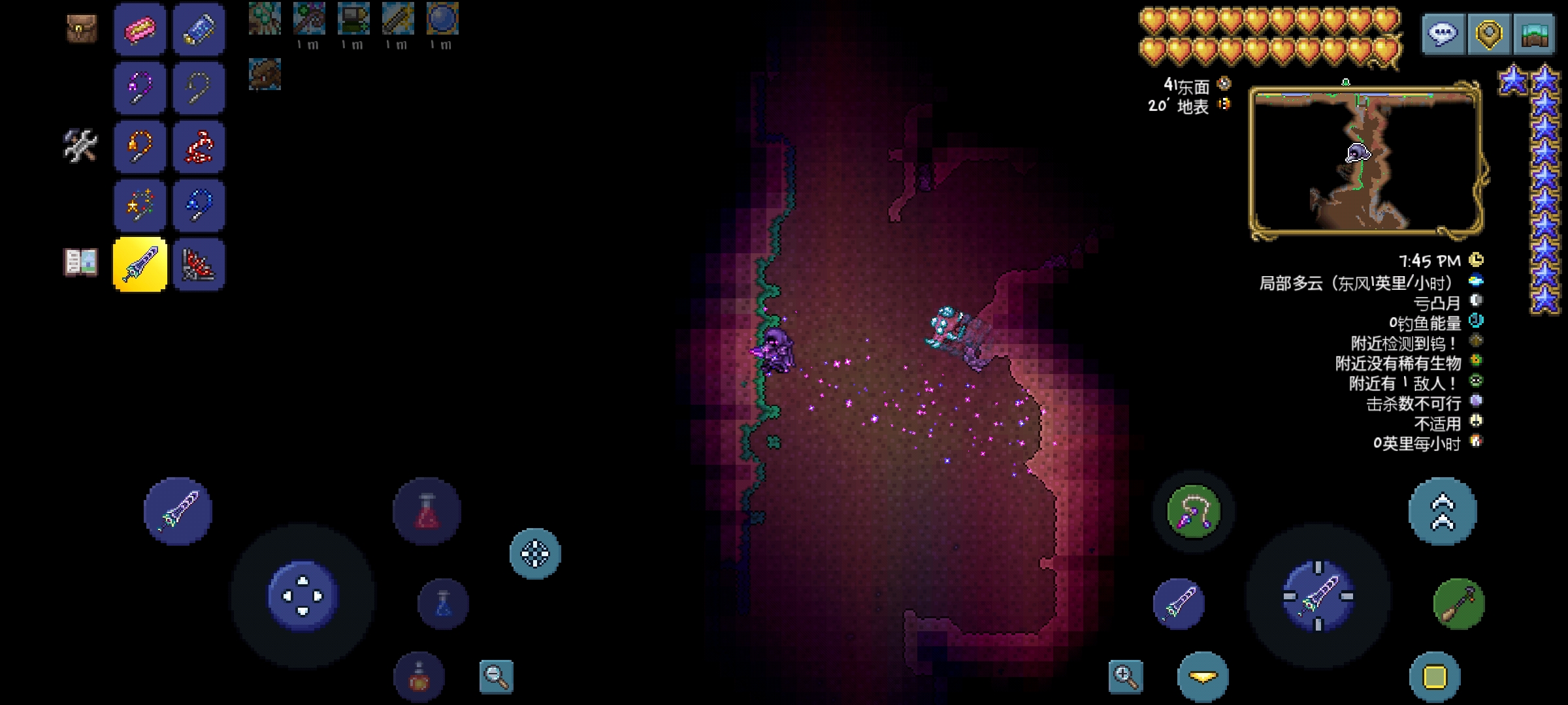 7.失谐钩爪:可以将玩家瞬移到钩爪钩住的地方,瞬移时带有短暂的粒子效果,粒子效果也可以照明