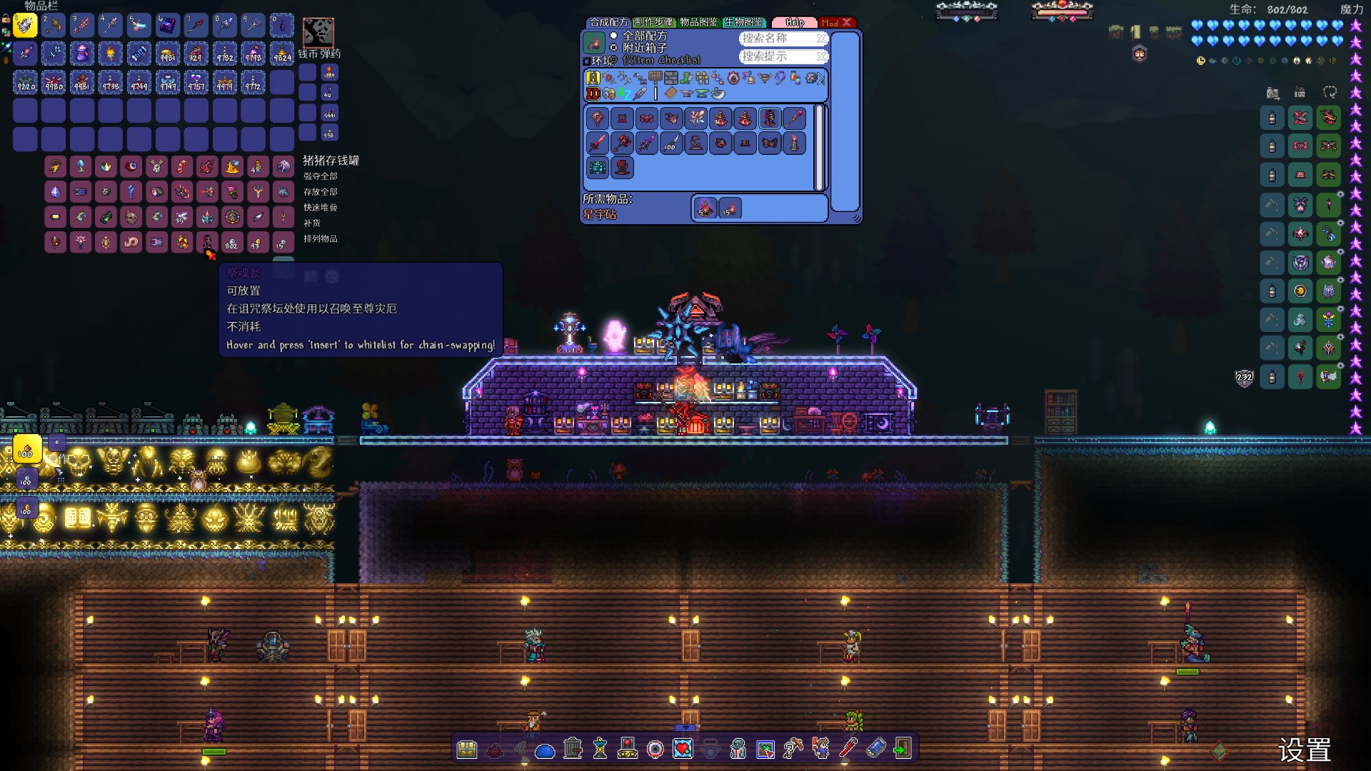 (boss召唤物都齐了,事件召唤物在虚空袋里,Boss rush没有打,不知道什么bug,打两三次都是刚打完痴愚金龙就一直掉帧,挂机十多分钟帧数还是连十都不到)