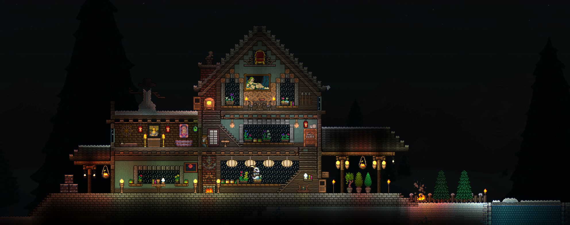 今天做这个只做了四小时还是蛮快的,各种砖块敲敲打打就有点费时间,尤其是屋顶那段敲了快半小时