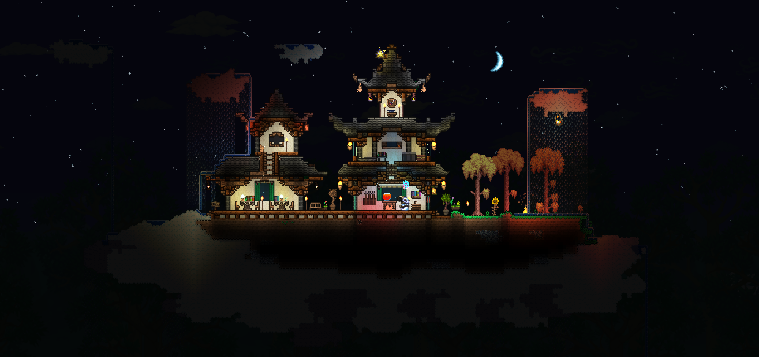 这期作品是建立在空岛上的国风建筑,整体采用暗调风,从而能在晚上有股别样的味道(*σ´∀`)σ
