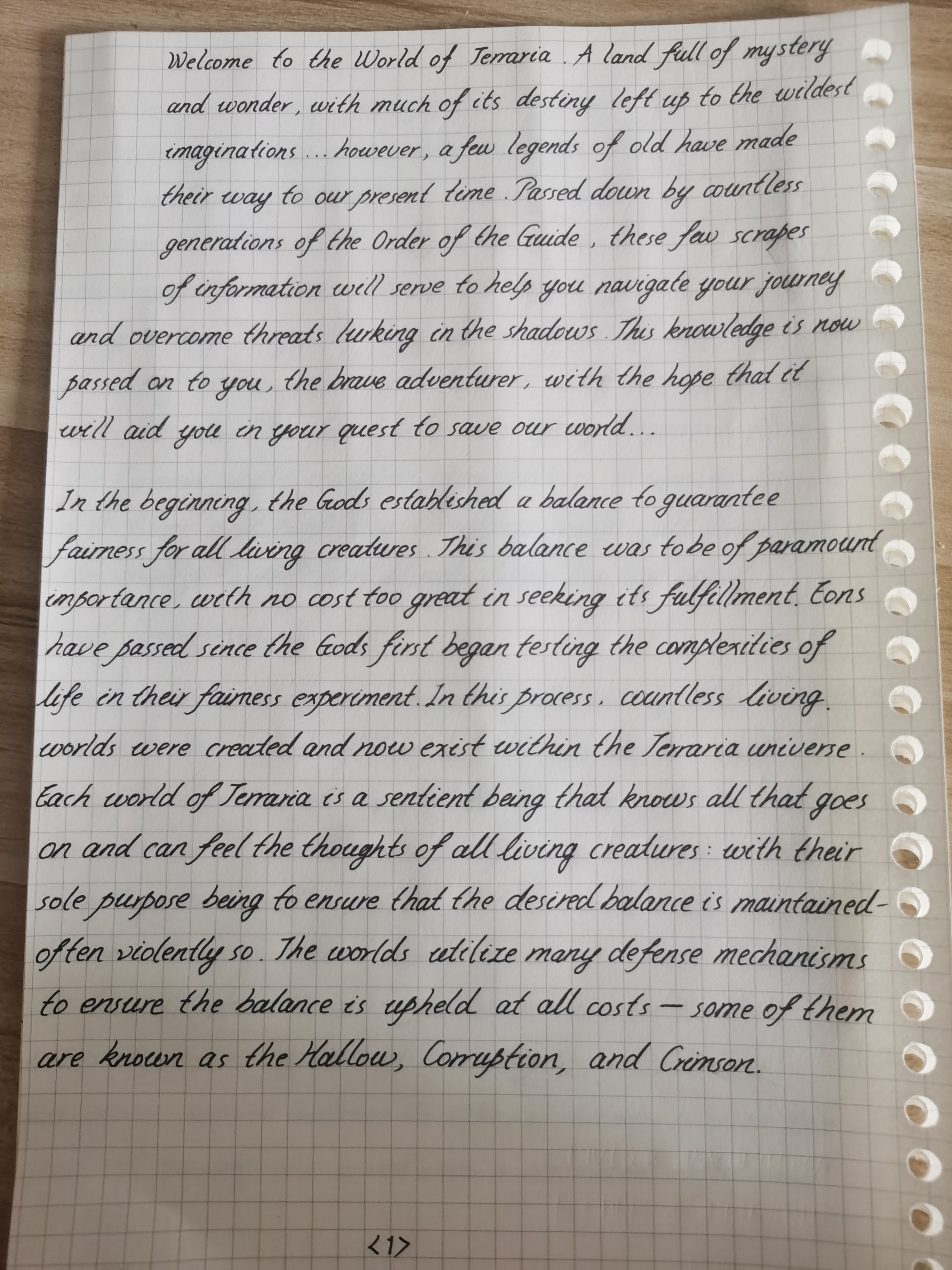 突然诞生的想法:想要也整理一下泰拉世界的背景。就去翻阅并手抄了一份官方背景故事