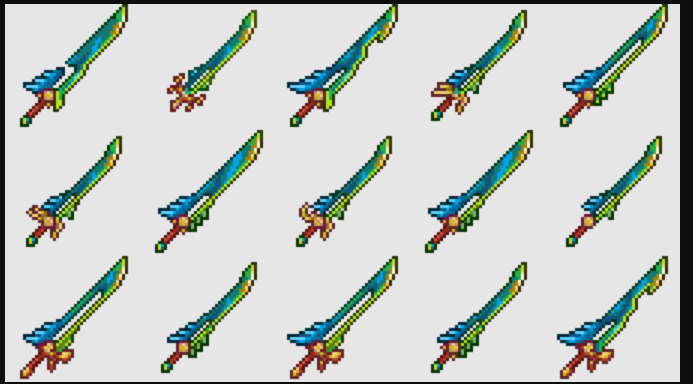 使用该武器时会召唤手持此剑的 15 种不同外观种类之一的、和玩家外观相同(但移除了所有染料效果)的射弹,跟随光标不断飞行攻击(围绕光标360°无死角穿墙攻击)。如果附近有敌怪,此武器会自动以其为目标,并无视光标位置。
