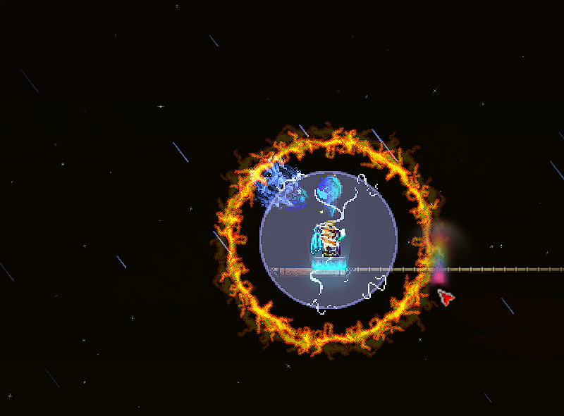实战中就是弹幕快要接近你的时候,你就用这个小工具按一下下键(S)就传送走了,其实冲刺也是一样的可以躲,不过相对而言这个装置可能更适合召唤师,或者站撸的战士想要躲避一些boss的关键性的技能combo。
