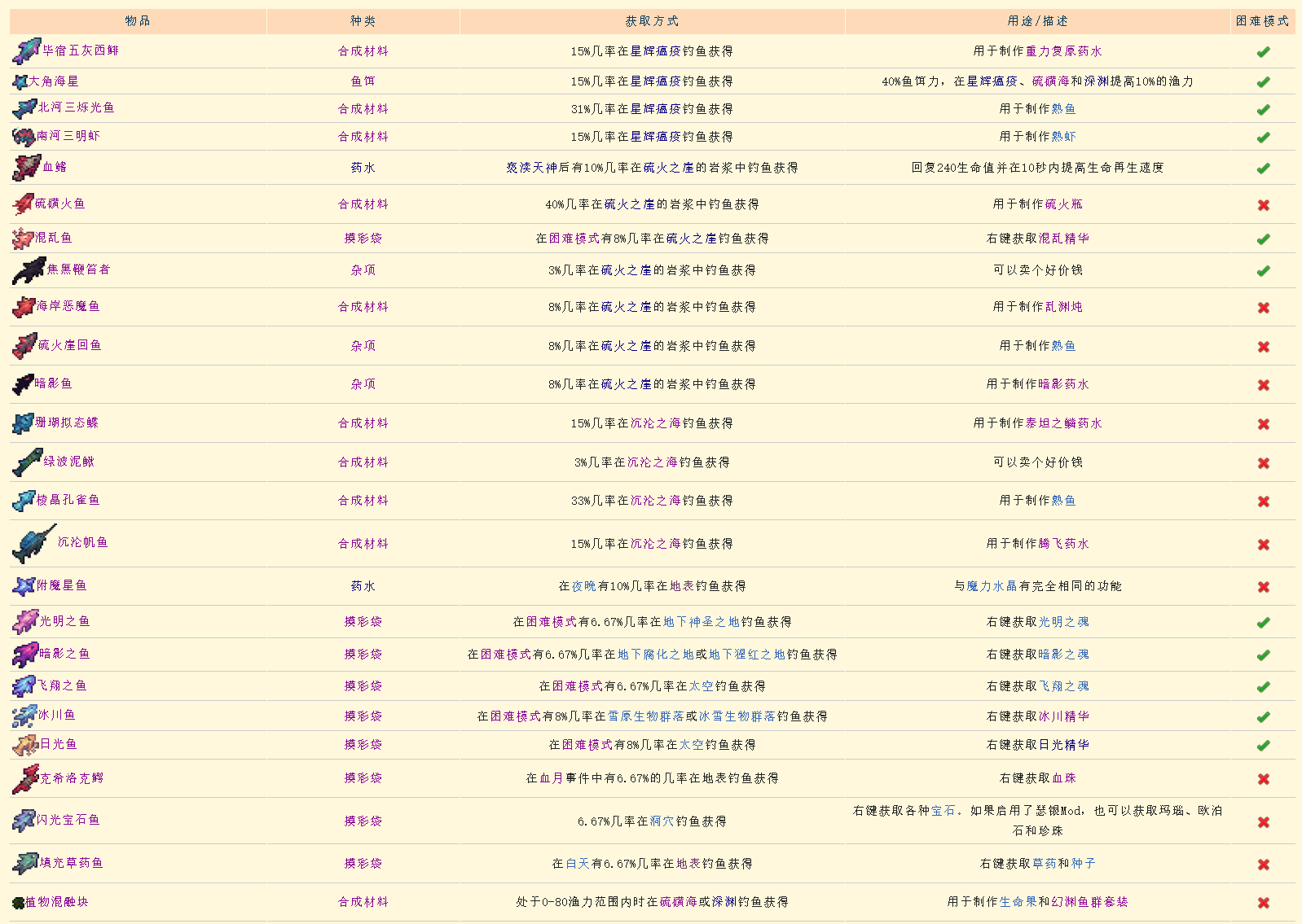步入正题,机制什么的可以直接去看我原版帖子。【关于钓鱼~这些你知道吗 | 泰拉酒馆 (tlryjg.com)https://tlryjg.com/qaaa/28268.html】