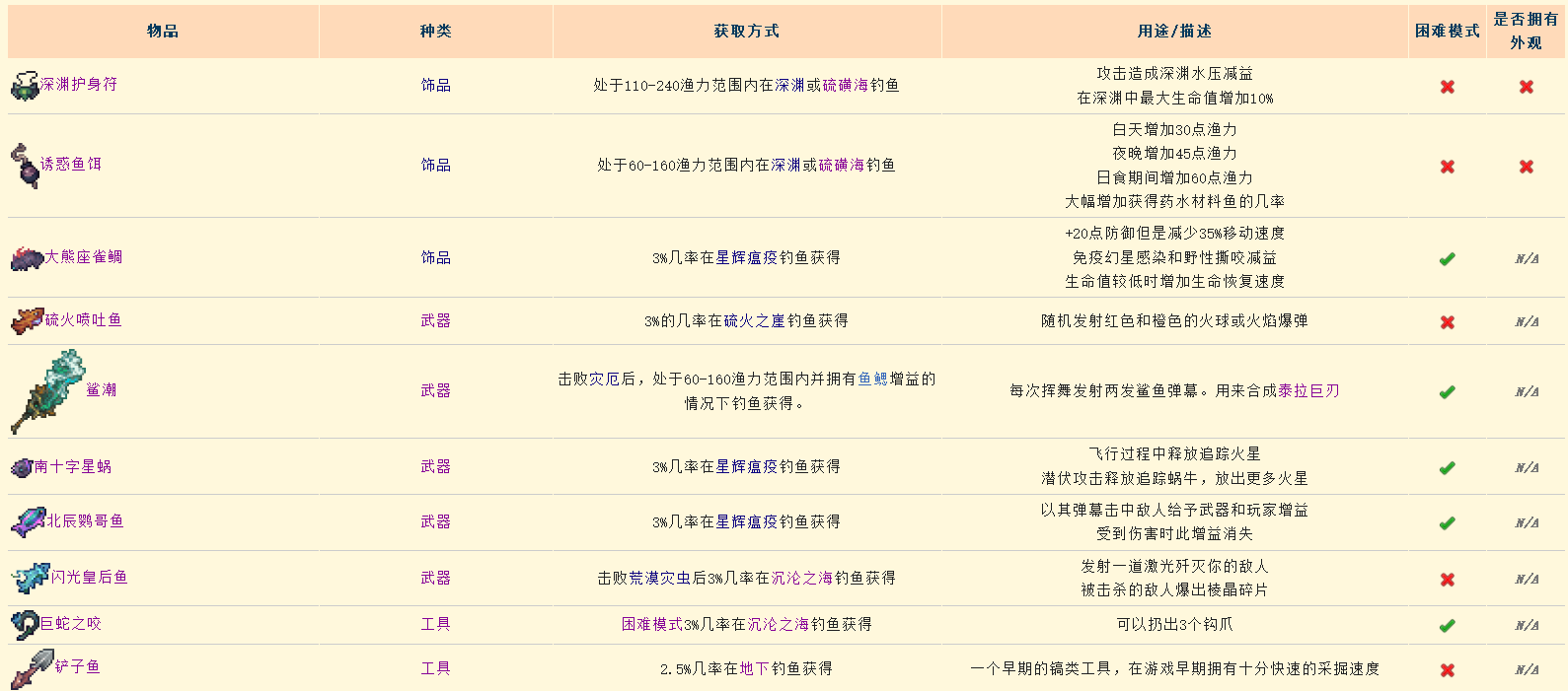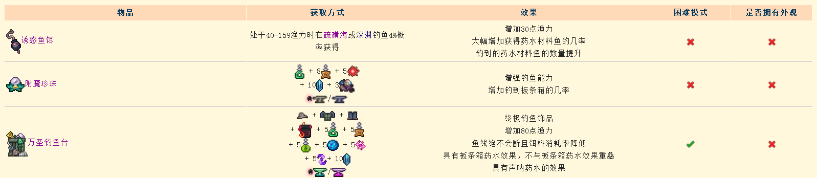 本帖仅展示灾厄世界新增的钓鱼相关物品。
