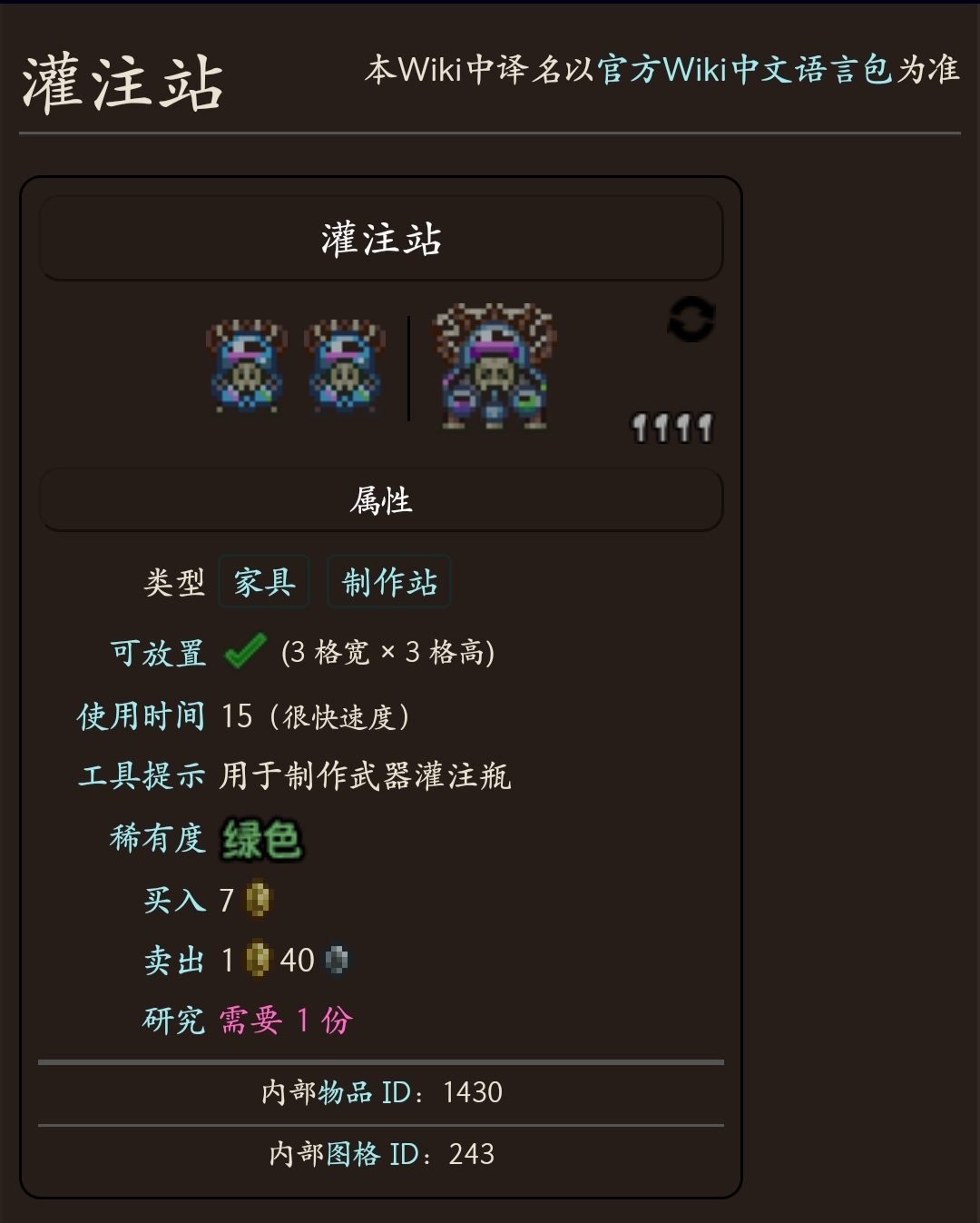 内容转载自:https://terraria.wiki.gg/zh/wiki/%E7%81%8C%E6%B3%A8%E7%AB%99