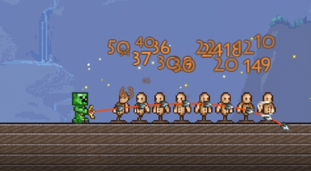 我们都知道,在打败肉山后的腐化世界里,吞世怪和爬藤怪会掉落诅咒焰(每秒10点伤害,无视防御);在打败肉山后的猩红世界里,灵液黏黏怪会掉落灵液(降低15点防御)。