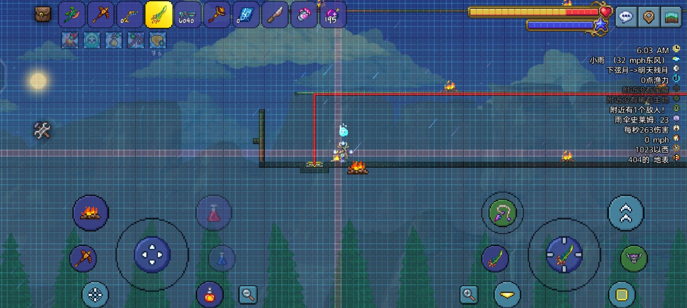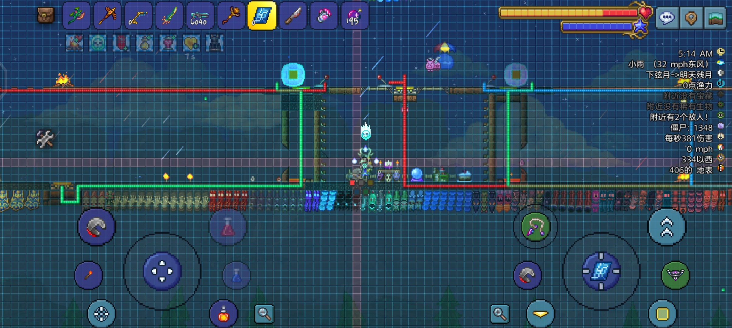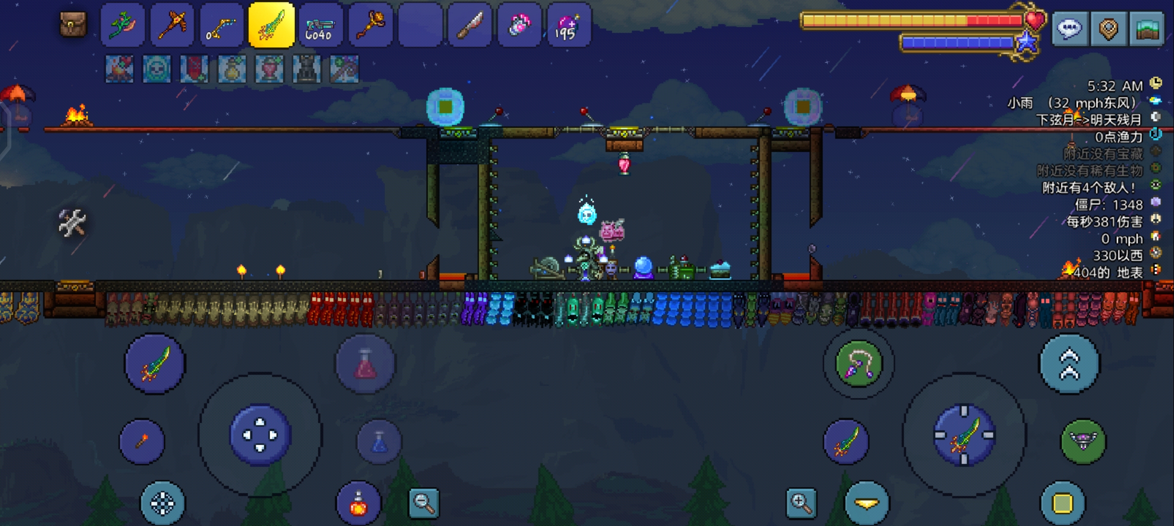 以下介绍下具体流程打法,首先月球领主降临,我们先挂buff增益,再把能召唤的东西召唤出来,然后就是嗑药[]铁皮,耐力,敏捷等药水增益]我们这时站在蜂蜜上