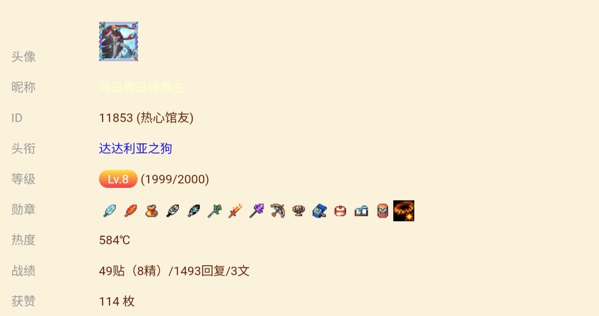 成功9级,发帖纪念一下 卡皮巴拉不能吃 厌恶世间一切不公 当你看到一个帖子时,我已9级!可喜可贺!可喜可贺!当然你看这个帖子时,我也白嫖到了1热度! 评论({{ count }})条 只看作者 {{ form.sort_type == "desc" ? "最新" : "最早" }} 简单说两句... 发表 {{ item.user_detail["nick_name"] }} {{ item.user_detail["title"] }} @{{ at_user.nick_name }} {{ parseTime(item.add_time) }} 来自{{ item.from_region || item.user_detail["city"]||"未知" }} {{ item.user_detail['tail'] || "" }} 回复 {{ item.childs?.length }} {{ item.collect_count }} {{ item.like_count }} {{ comment_child.user_detail["nick_name"] }} @{{ at_user.nick_name }} {{ parseTime(comment_child.add_time) }} 来自{{ comment_child.from_region||comment_child.user_detail['city'] || "未知" }} {{ comment_child.user_detail['tail'] || "" }} 回复 {{ comment_child.like_count }} {{ comment_child.collect_count }} [加载更多] [折叠] 📢 暂无内容 [加载更多] 简单说两句... {{ count }} - - 🤔 ⬆️ ↪️ 回复 ⭐️ 点赞 ❤️ 收藏 ❗️ 举报 ⛔️ 删除 回复 发表 MD内容 图片 视频 表情 @馆友 发表 提到 等 {{ activeAtIds?.length }}人 {{ item.title }} {{ item.nick_name }} 请输入MD格式的内容