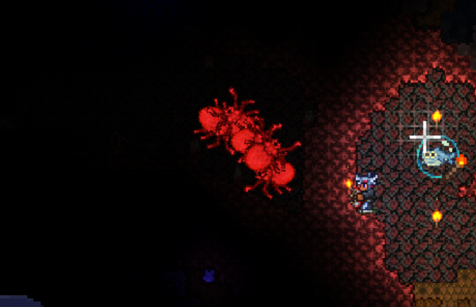 今天上了地表,直接就是太空,然后就打算搞克脑,但根本打不了,用特性刷了些boss召唤出的小怪掉的材料,做了猩红套,之后就可以去地狱旁边挖狱岩了。