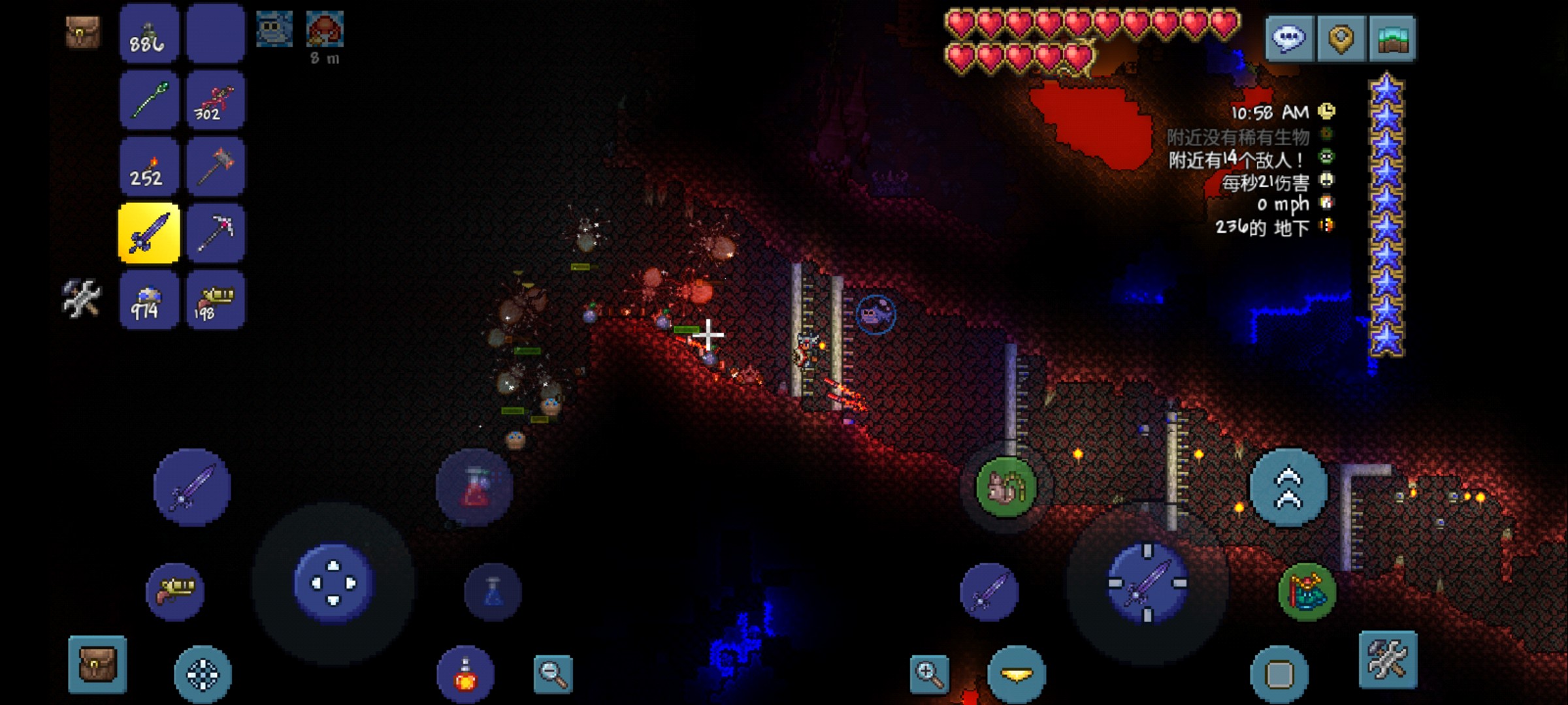 今天下载了1.4.4的泰拉,然后试了下天顶,玩了半天,进展很慢,身上基本上什么都没,还出了一头肉山,带来四个小鬼,用墓碑输出了半天,终于解决了。之后挖了些矿,但问题是洞穴那里都是蘑菇地形和丛林地形,基本上见不着石头,所以熔炉该怎么获取,是去地狱建筑偷或是把商人搞到丛林去卖?因为我现在都走不了几步,所以这些方法都是挺艰难的,也不知道后面应该怎么办