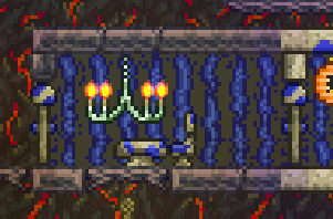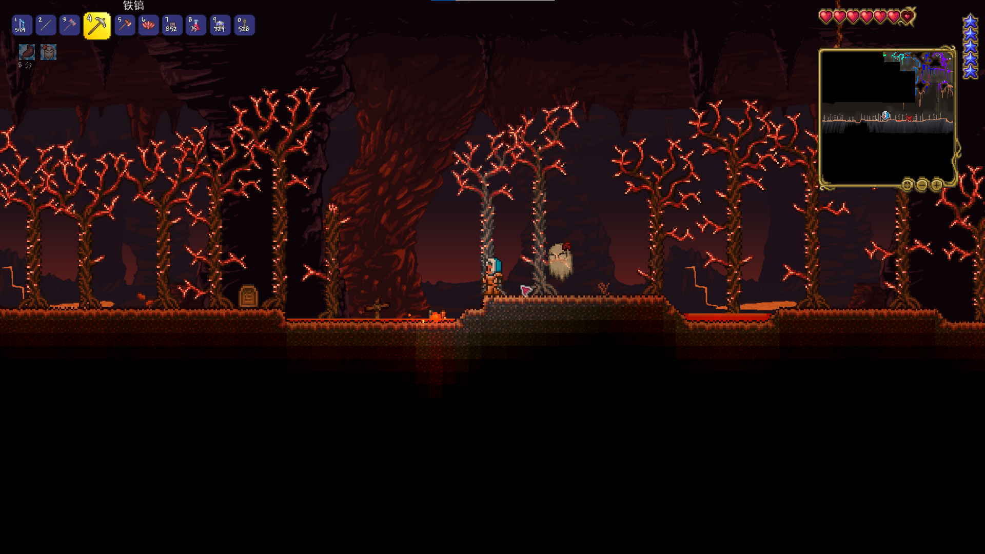 小心点,我们之前在上面开挖,放了很多岩浆下来,在地上留下了许多岩浆坑