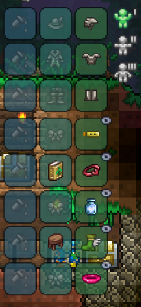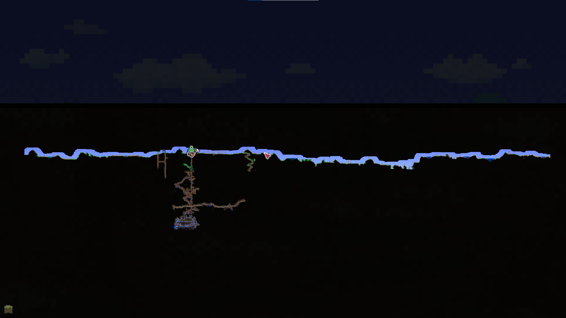 如图所示,出生点左边是两颗世界树,沙漠和丛林;右边是一片雪地和地牢;下方有一条铁轨。