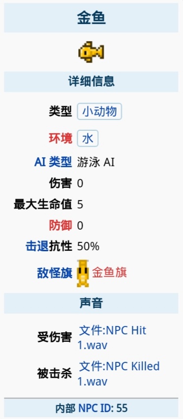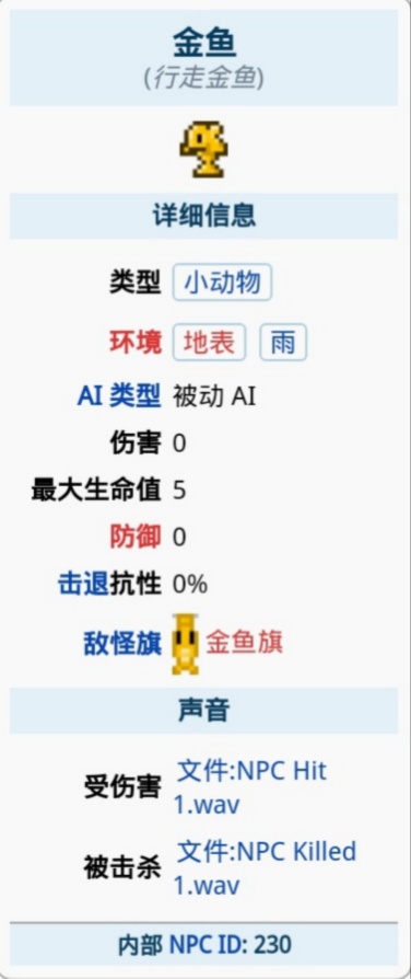 众所周知,在泰拉瑞亚里有一个小动物 ---金鱼(goldfish)