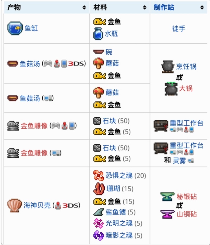 金鱼可以用毒粉或魔粉使它变成毒金鱼或腐化金鱼,当然血月也是可以的,但正在陆地上行走的金鱼不受毒粉或魔粉影响(利用这一点可以卡敌怪上限)