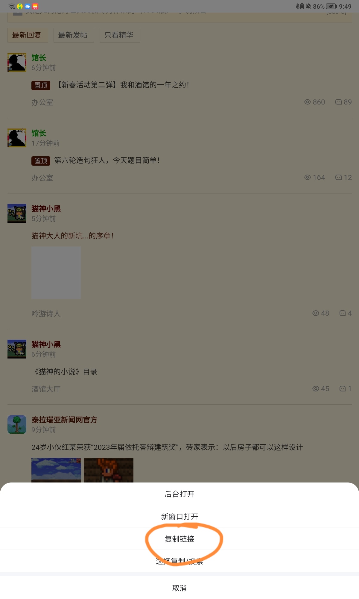 先把自己需要的帖子链接复制下来