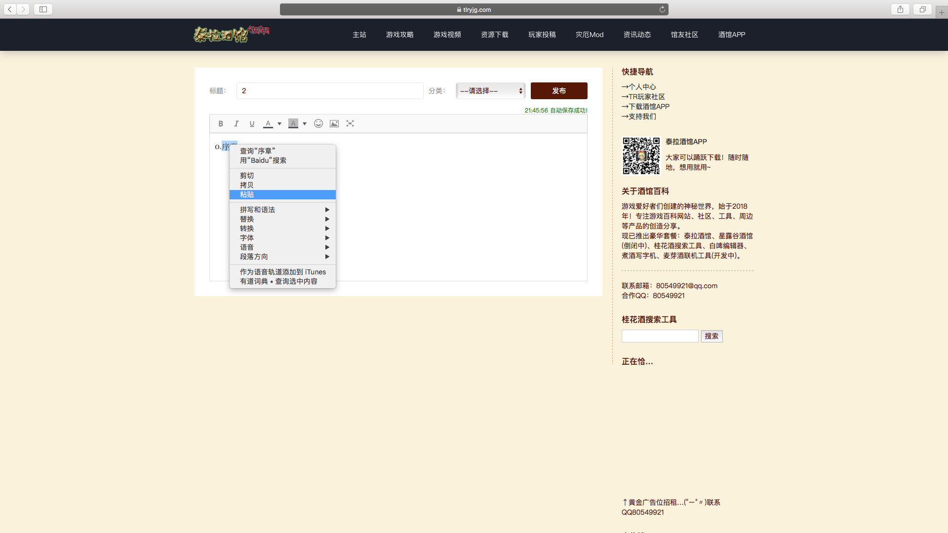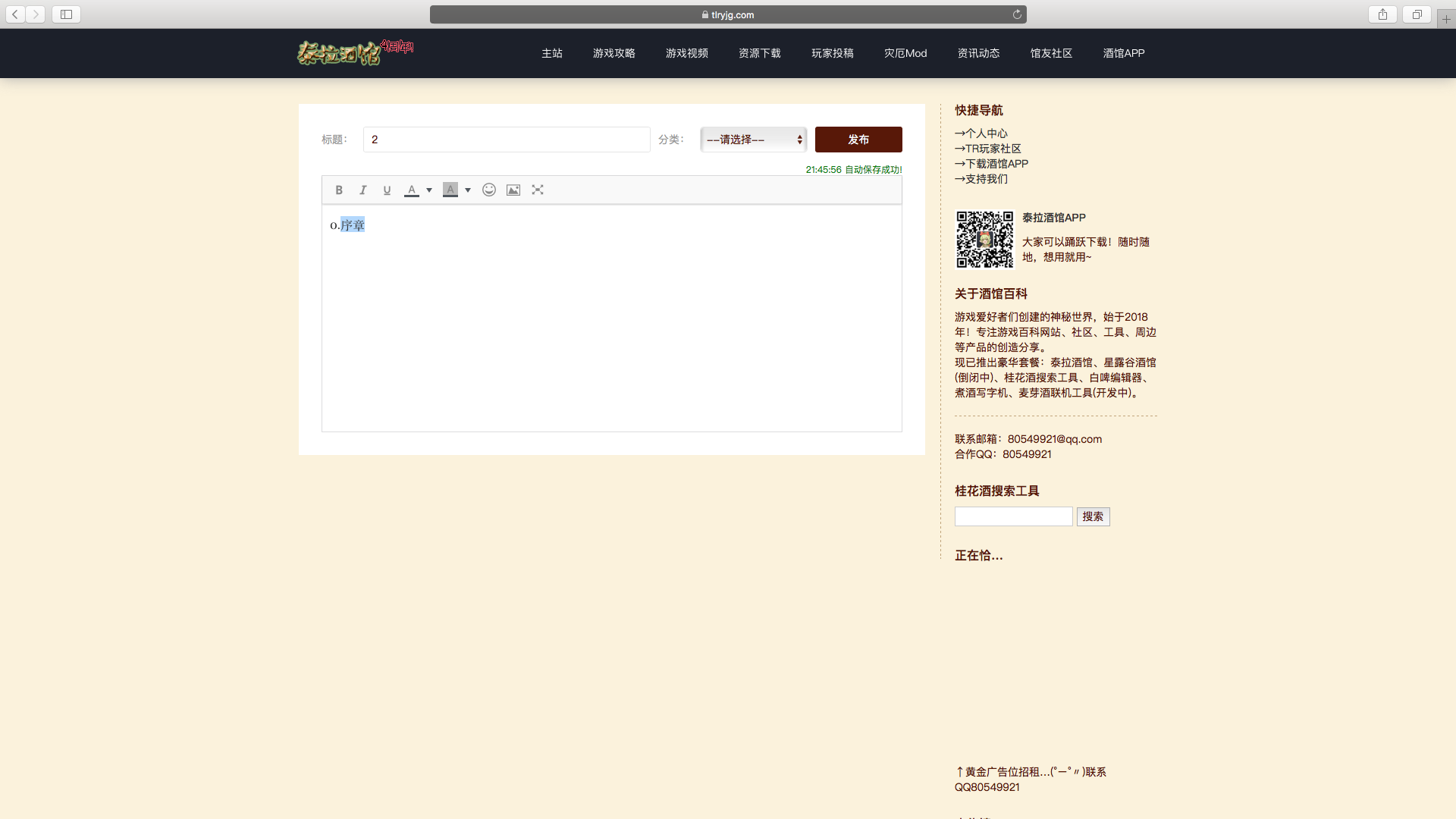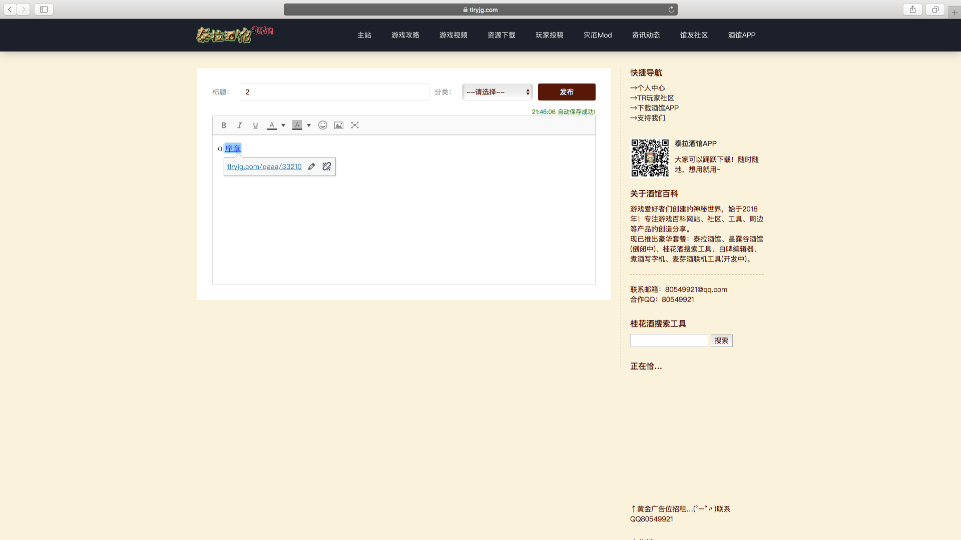 第二步,创建一个帖子作为目录/传送门,然后写下你希望其他人点击的文字,最后选中他!注意一定要选中才有效嗷!