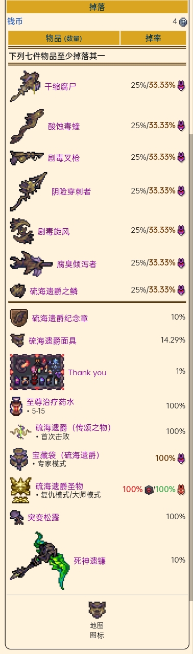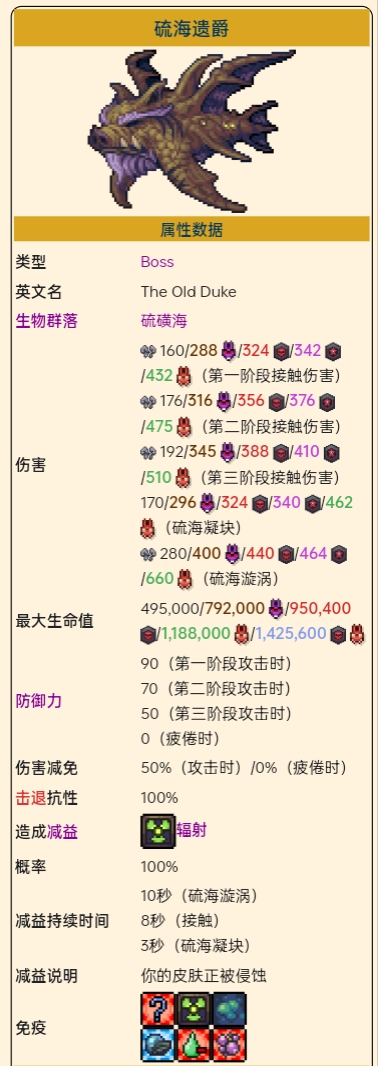 目前,硫海遗爵是唯一一个在灾厄论坛没有自己的传说的Boss。
