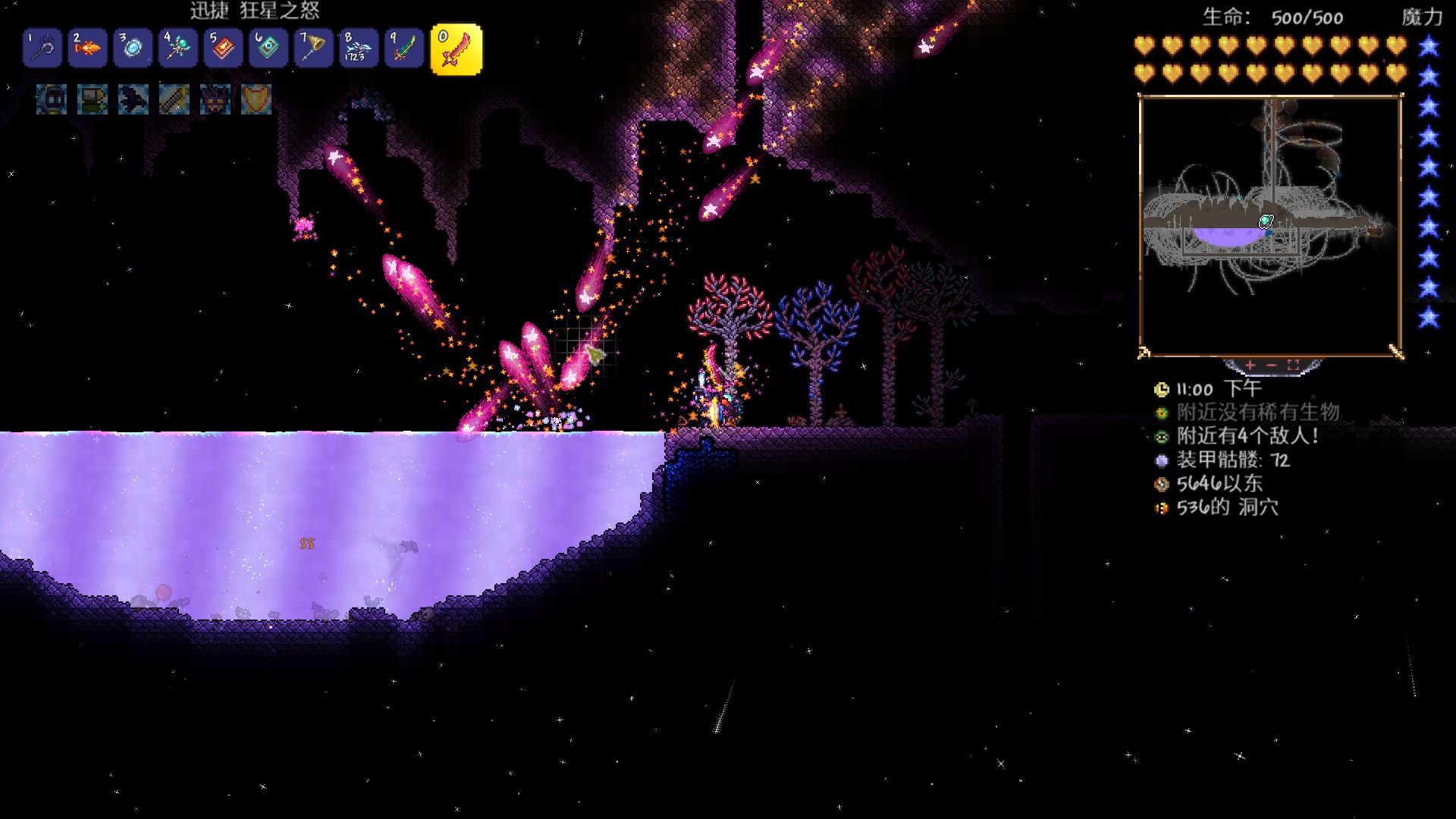 “击败黒长直让我换上了全新的盔甲。让我大步想地狱迈进。可我并没有穿着它太久,从天而降的陨石为我带来了超酷的铠甲,走路都拉风。我想想......是叫陨石盔甲吧,我就是穿着它击败了镇守地牢的骷髅王。此时,地面上已经没有什么能阻止我了。肉山在我的投掷武器,近战武器,远程武器的协同作用下倒下,我乘胜追击住在地下。”