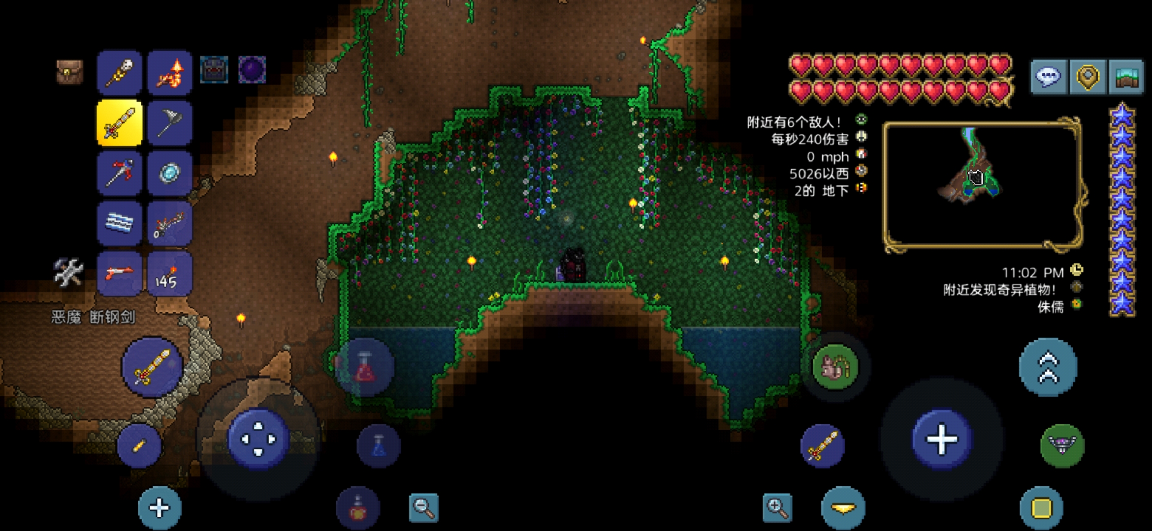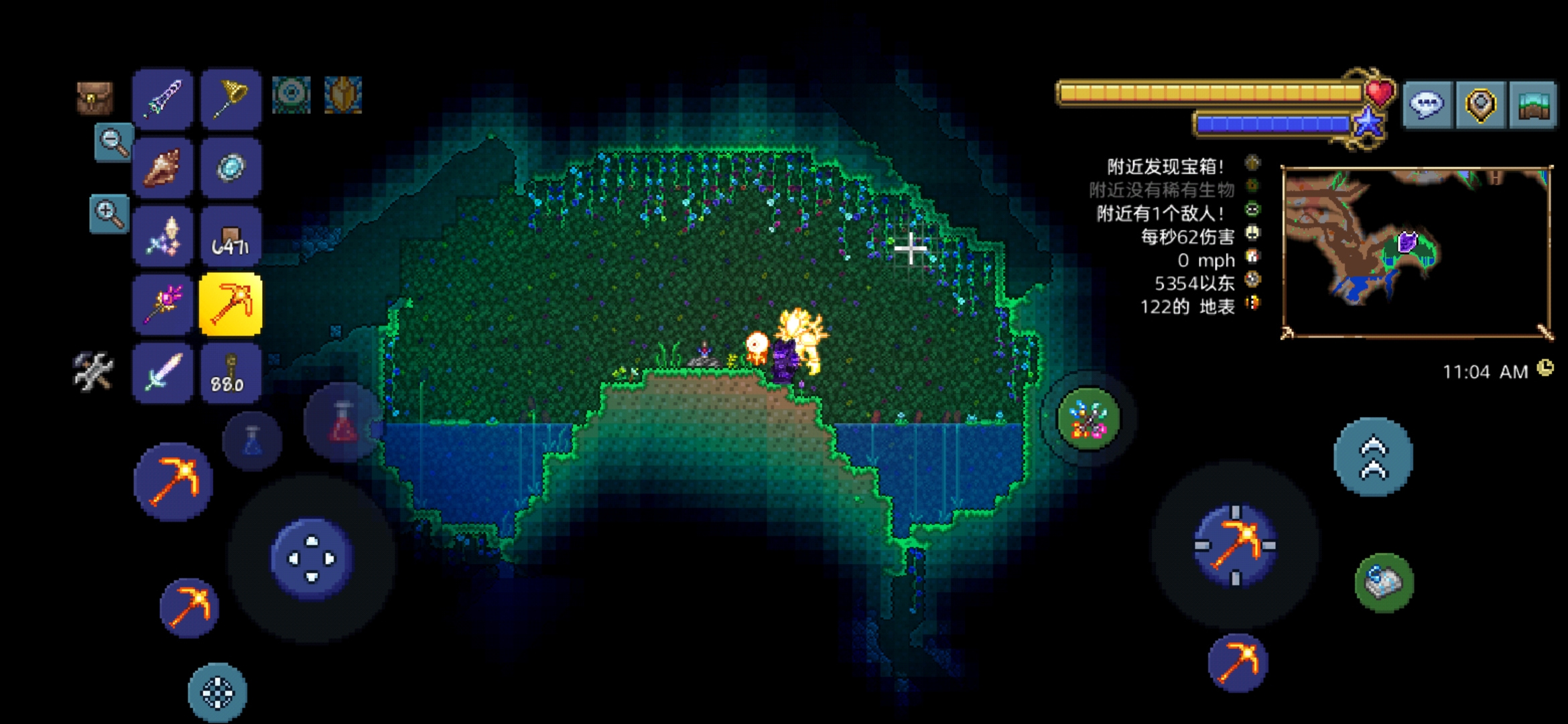 可见这俩剑冢虽然挨得近,并且在地表挺容易看到,但都离出生点很远,在海边的这个位置,并且中间隔着个这个世界唯一的腐化