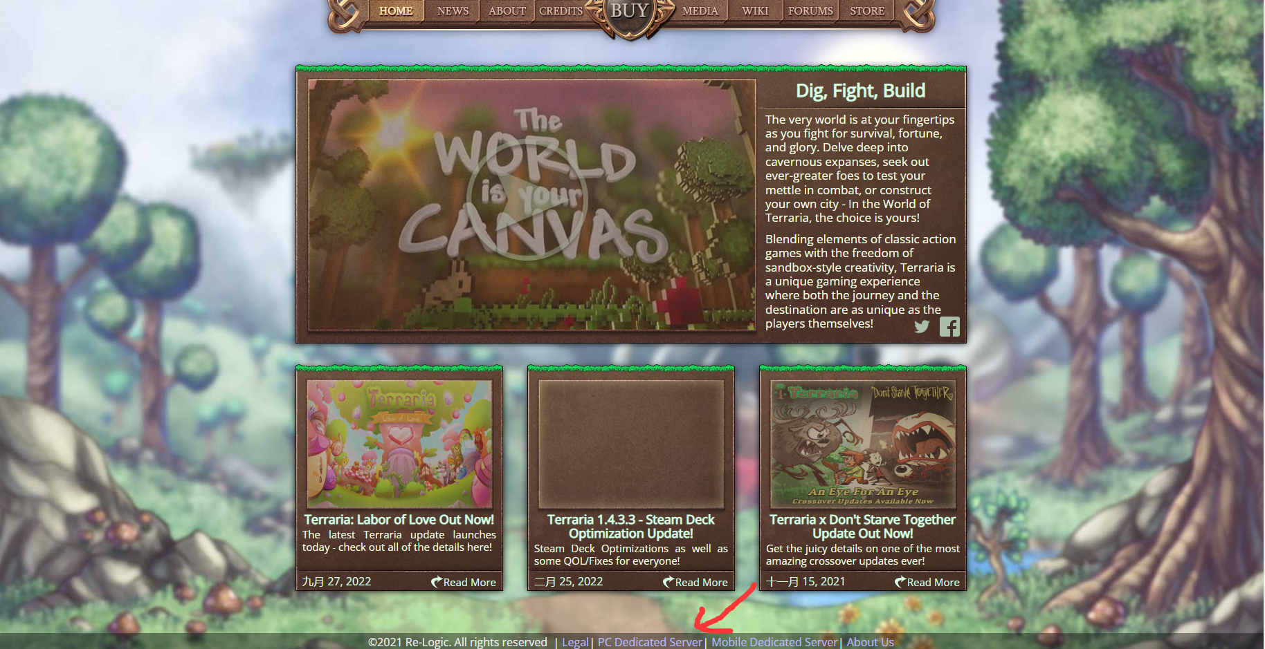 第一步:进入泰拉瑞亚官网(www.terraria.org)选择图片下方的PC Dedicated Server