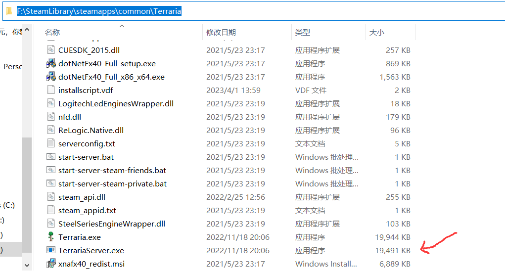 steam用户在自己的下载游戏的路径中可以直接找到TerrariaServer.exe