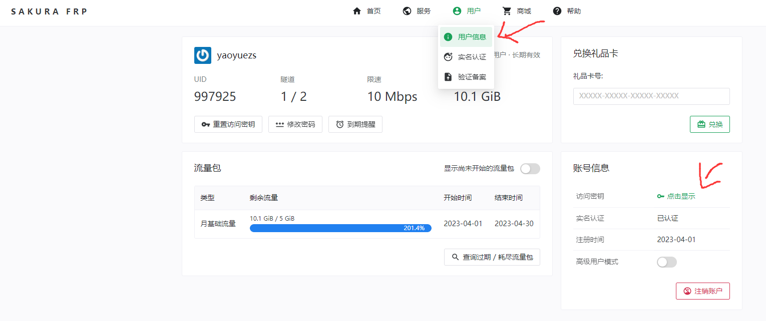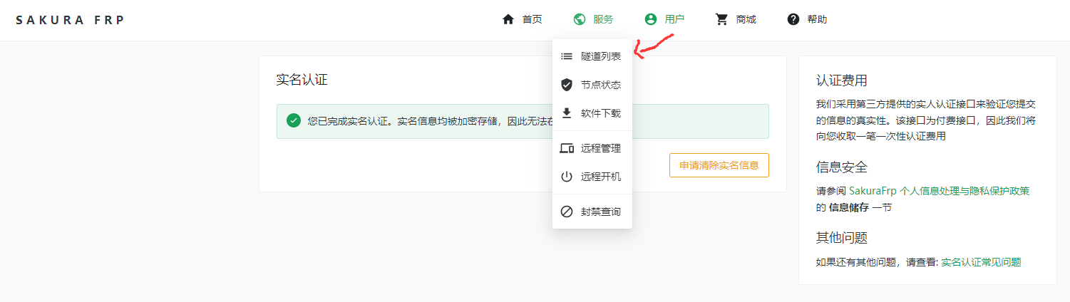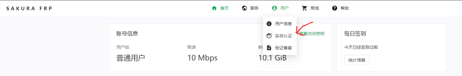 第一步:找到内网映射的网站,我使用的是樱花映射(www.natfrp.com),这是免费网站,注册一个自己的账号