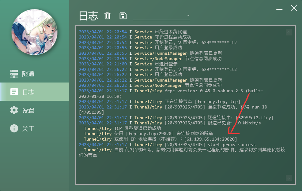 第九步:此时你已经完成了服务器开启与内网映射,现在点击日志查看你的内网映射的公共IP与端口,复制发给和你联机的朋友就能通过IP地址与端口进入你的服务器了。你自己也可以通过公共IP与端口进入或者输入IP地址127.0.0.1:7777就能以本地的形式进入服务器。