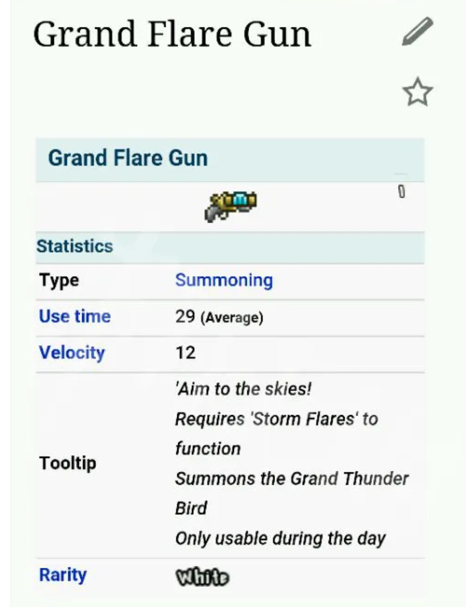 然后是召唤物:闪耀枪和闪耀弹,都放在包里时使用闪耀枪召唤雷鸟(蓝色的瓶子是落星加瓶子合成的,闪耀弹和闪耀枪的合成材料是一样的,但是合成用的蓝瓶子需求的数量不同)。