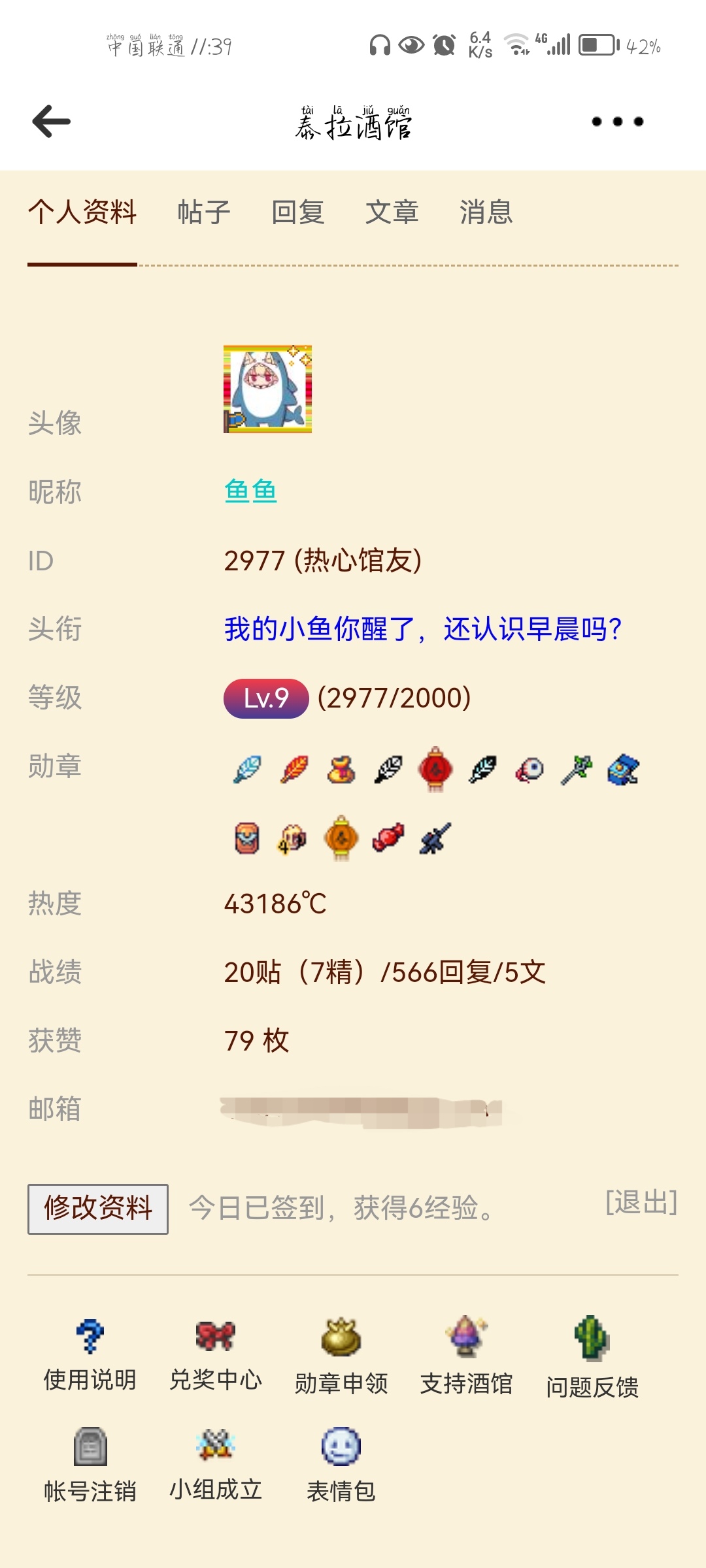 刚好经验和ID一样 鱼鱼 我的小鱼你醒了,还认识早晨吗? 评论( {{ count }})条 只看作者 {{ form.sort_type == "desc" ? "最新" : "最早" }} 简单说两句... 发表 {{ item.user_detail["nick_name"] }} {{ item.user_detail["title"] }} @{{ at_user.nick_name }} {{ parseTime(item.add_time) }} 来自 {{ item.from_region || item.user_detail["city"]||"未知" }} {{ item.user_detail['tail'] || "" }} {{ item.childs.length }} {{ item.collect_count }} {{ item.like_count }} {{ comment_child.user_detail["nick_name"] }} @{{ at_user.nick_name }} {{ parseTime(comment_child.add_time) }} 来自{{ comment_child.from_region||comment_child.user_detail['city'] || "未知" }} {{ comment_child.user_detail['tail'] || "" }} {{ comment_child.like_count }} {{ comment_child.collect_count }} [展开更多] [折叠] 📢 暂无内容 简单说两句... {{ count }} - - 🤔 ⬆️ ↪️ 回复 ⭐️ 点赞 ❤️ 收藏 ❗️ 举报 ⛔️ 删除 回复 发表 MD内容 图片 视频 表情 @馆友 发表 提到 等 {{ activeAtIds.length }}人 {{ item.title }} {{ item.nick_name }} 请输入MD格式的内容