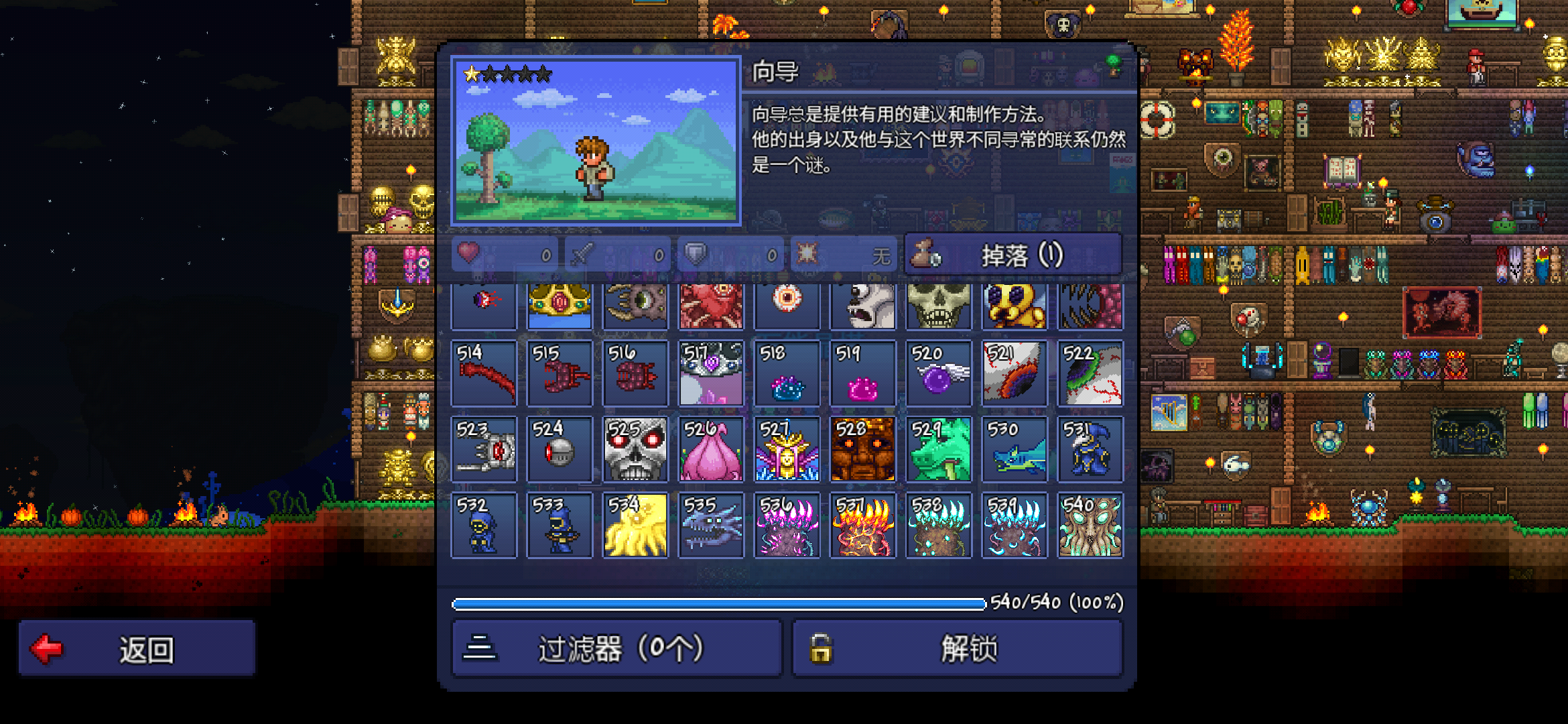 本人比较菜,这个人物是五月3号创建的,到现在玩了160小时,已经战士毕业。之后开始收集全图鉴,从中也在酒馆这里查阅了很多很多的资料,感谢@破晓大哥的攻略,受益匪浅,现在已经买了万能晶塔,特此纪念,版本移动版1.4.4.9,目前在收集全宠物和坐骑,成就也只差200钓鱼啦,继续努力!