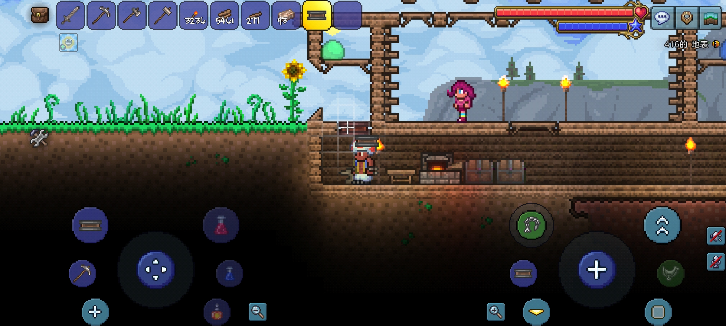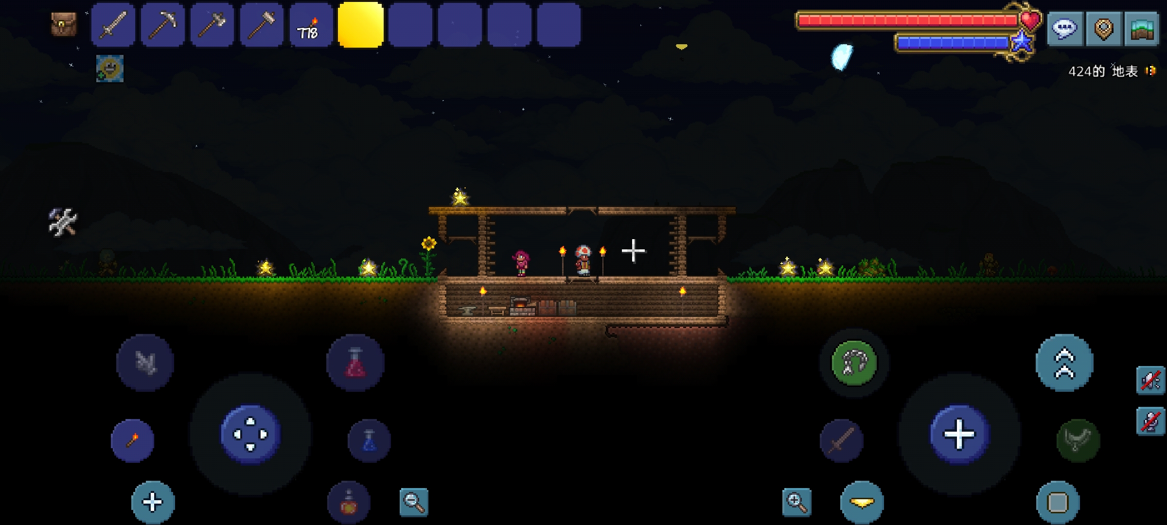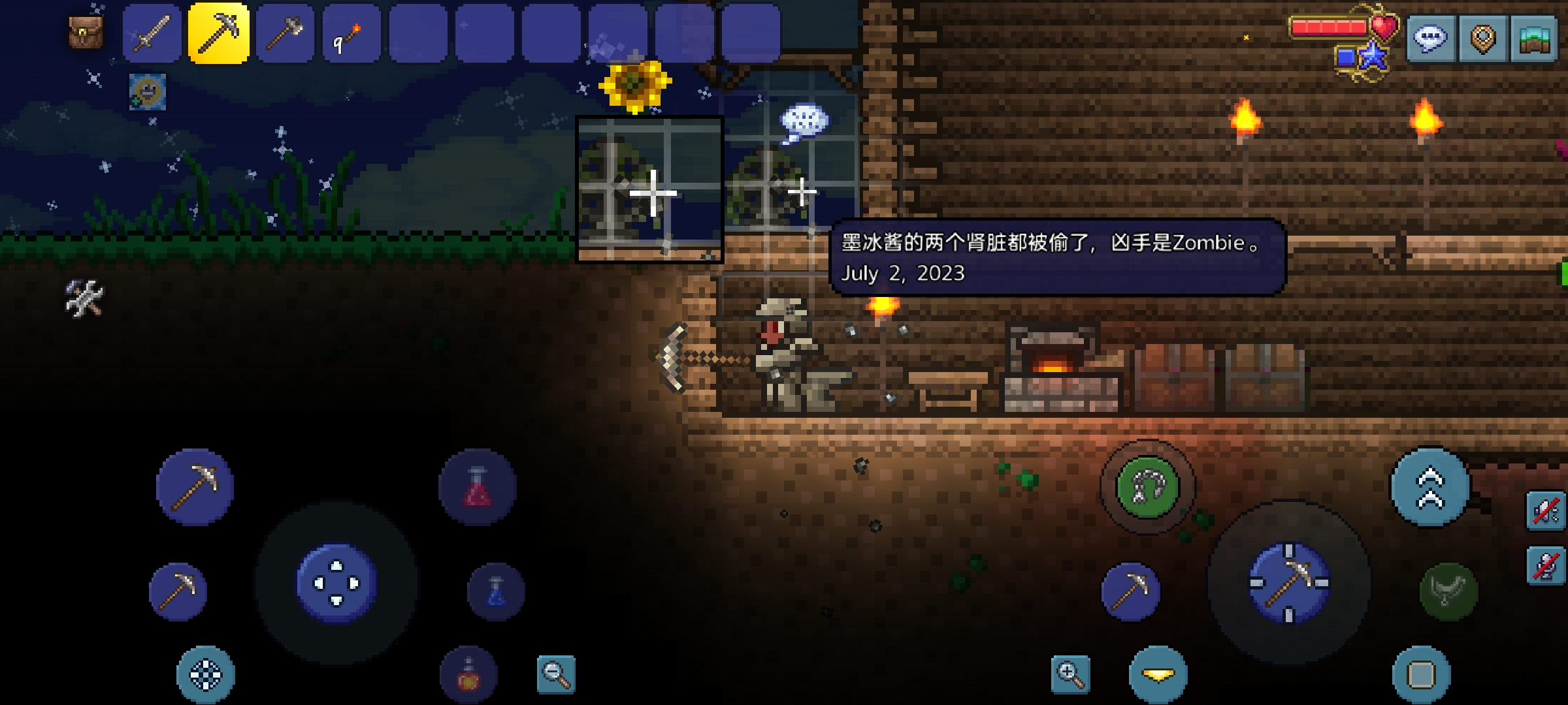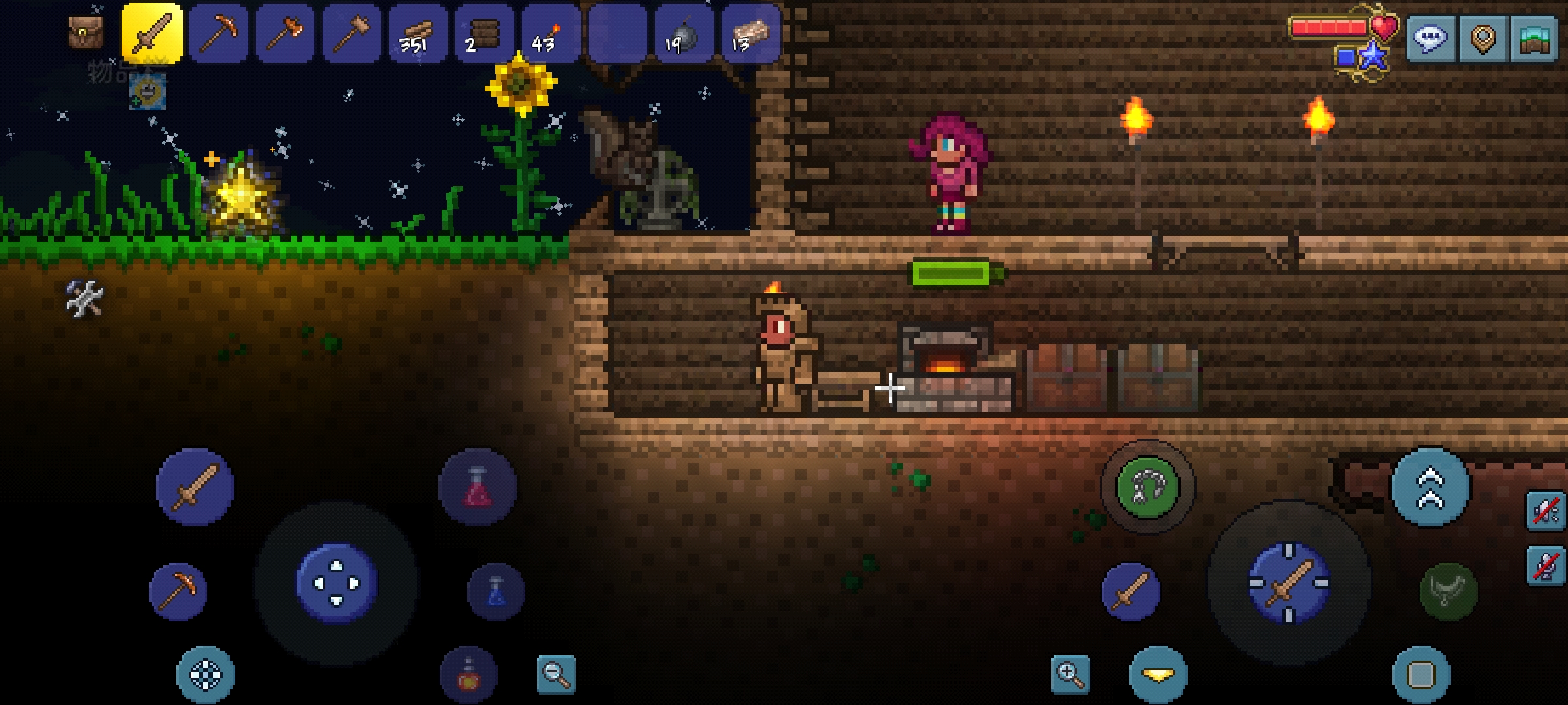 天亮了,我们把墓碑挖掉然后把金币放进箱子里我们再做一套铁质装备然后去砍点树做点平台吧!