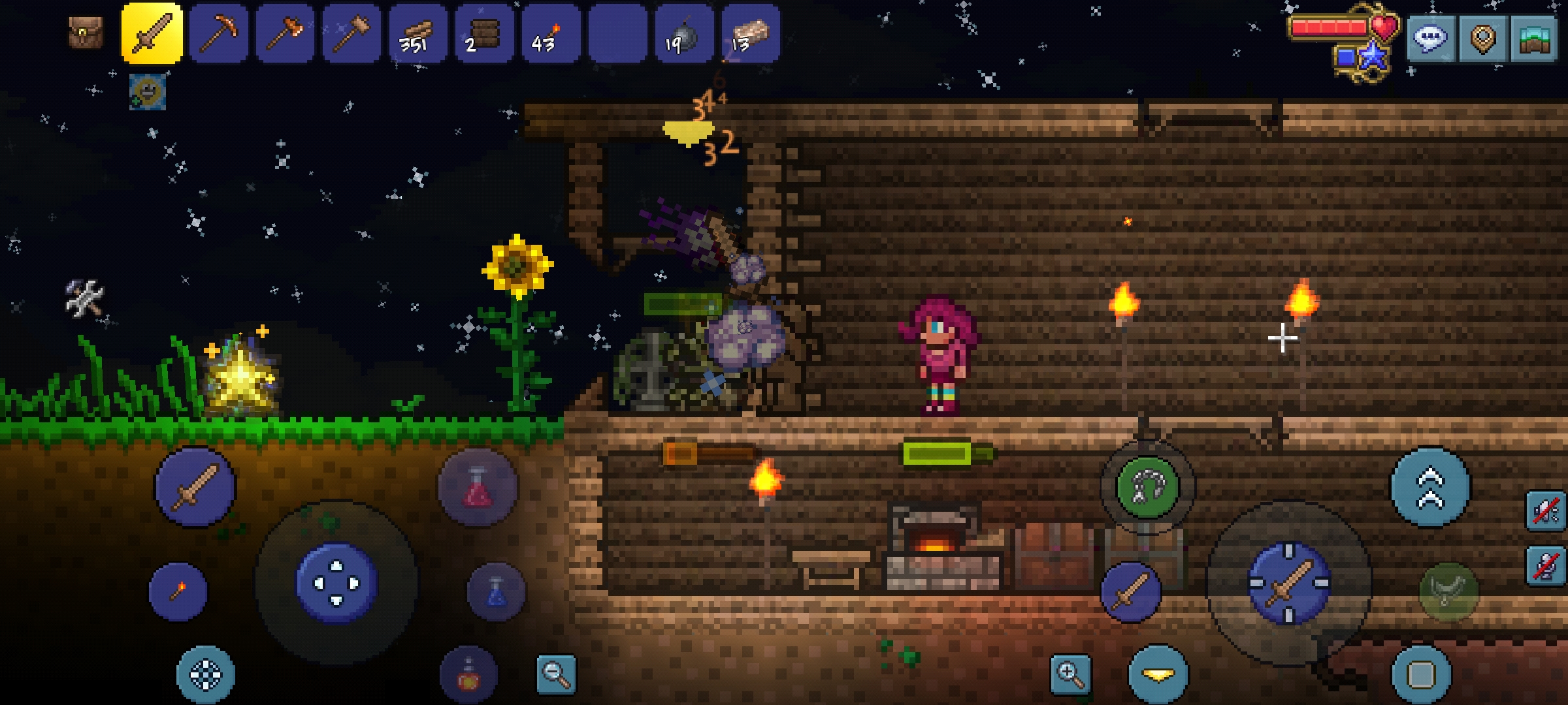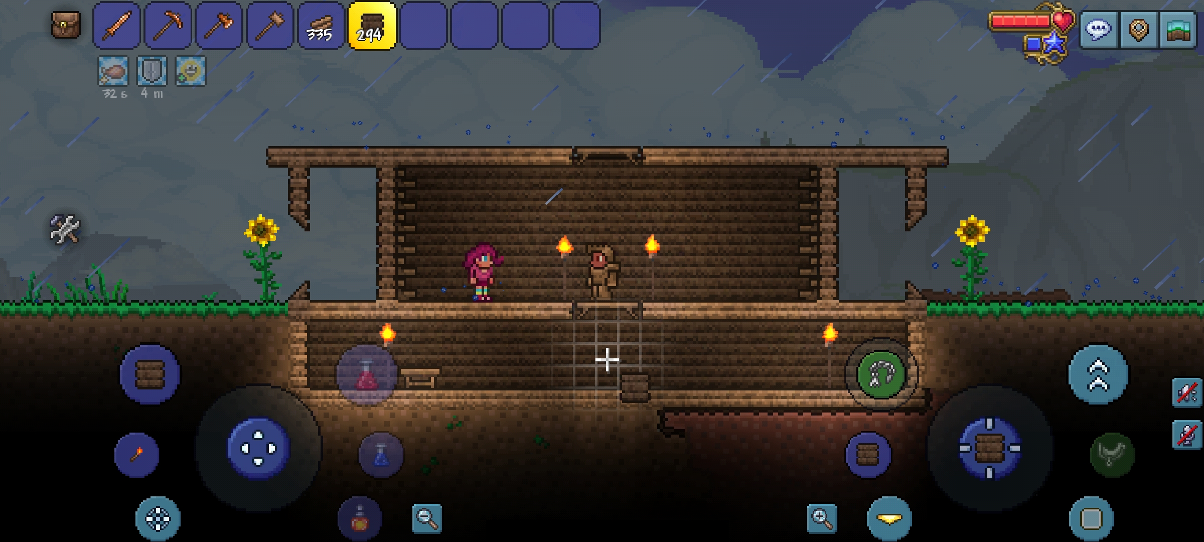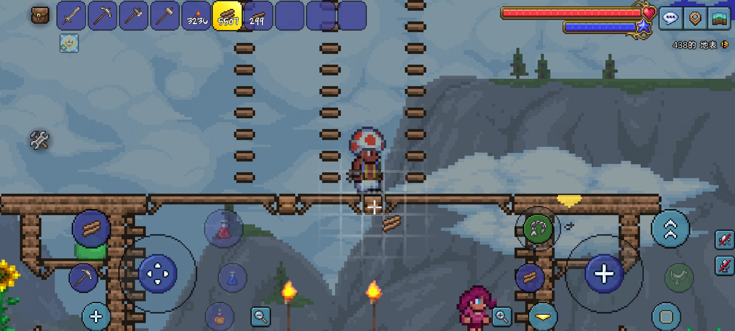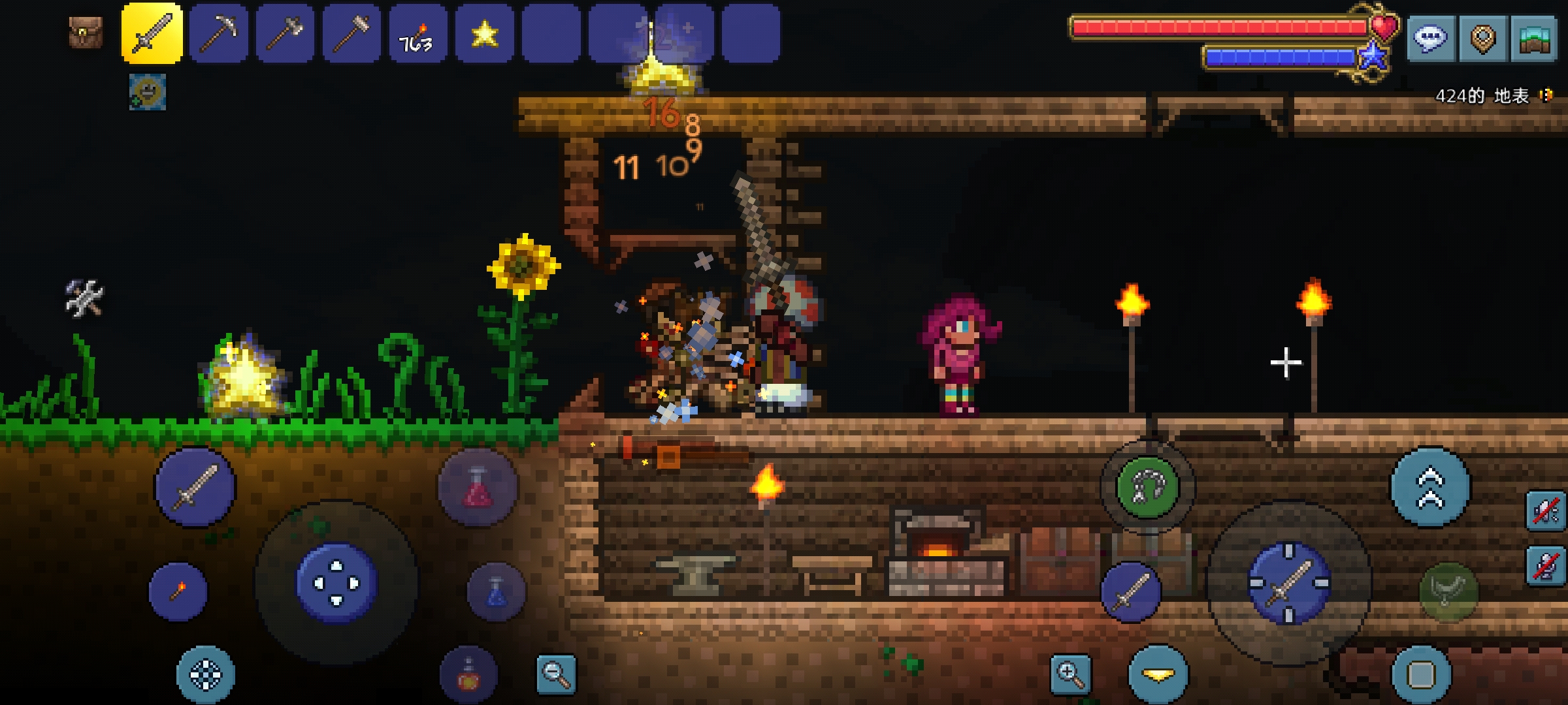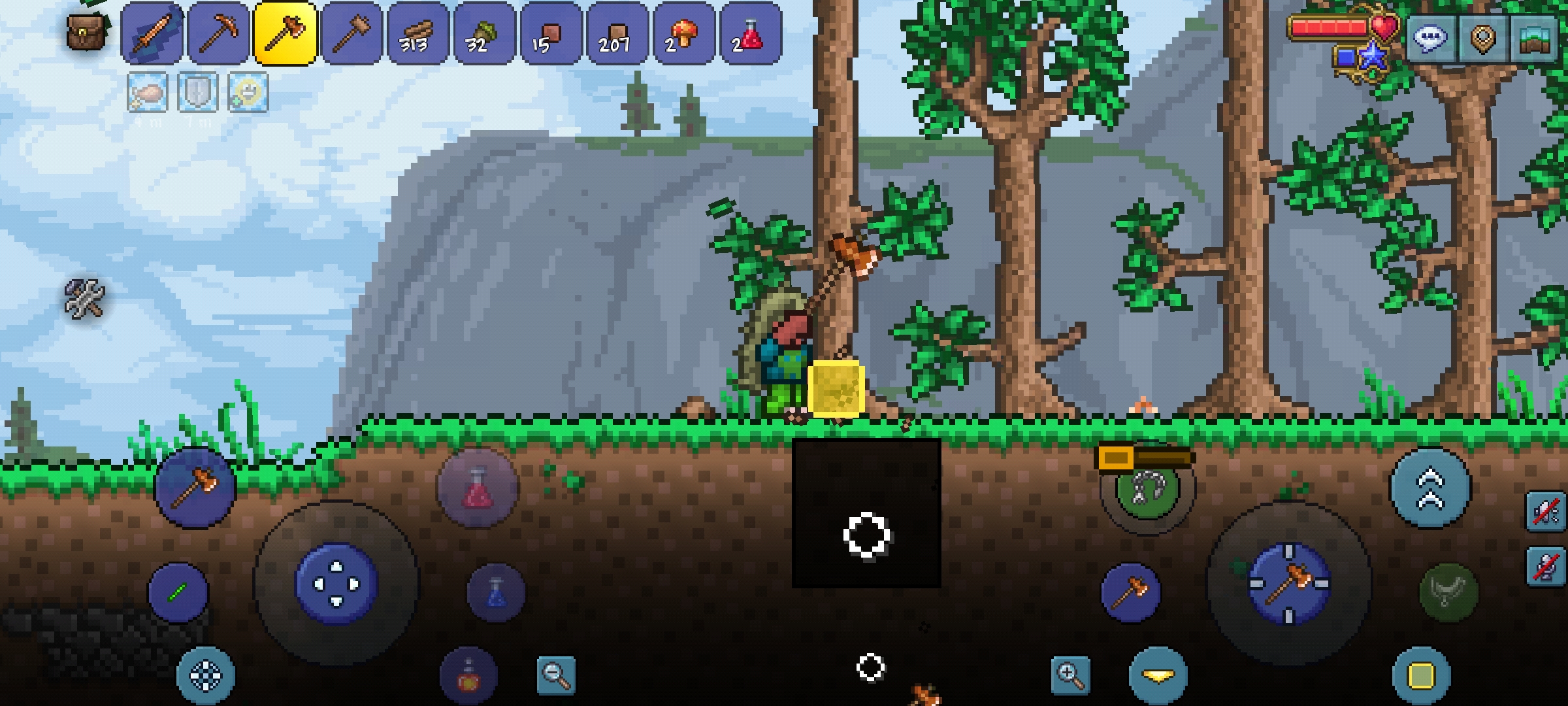 天亮了,我们把墓碑挖掉然后把金币放进箱子里我们再做一套铁质装备然后去砍点树做点平台吧!