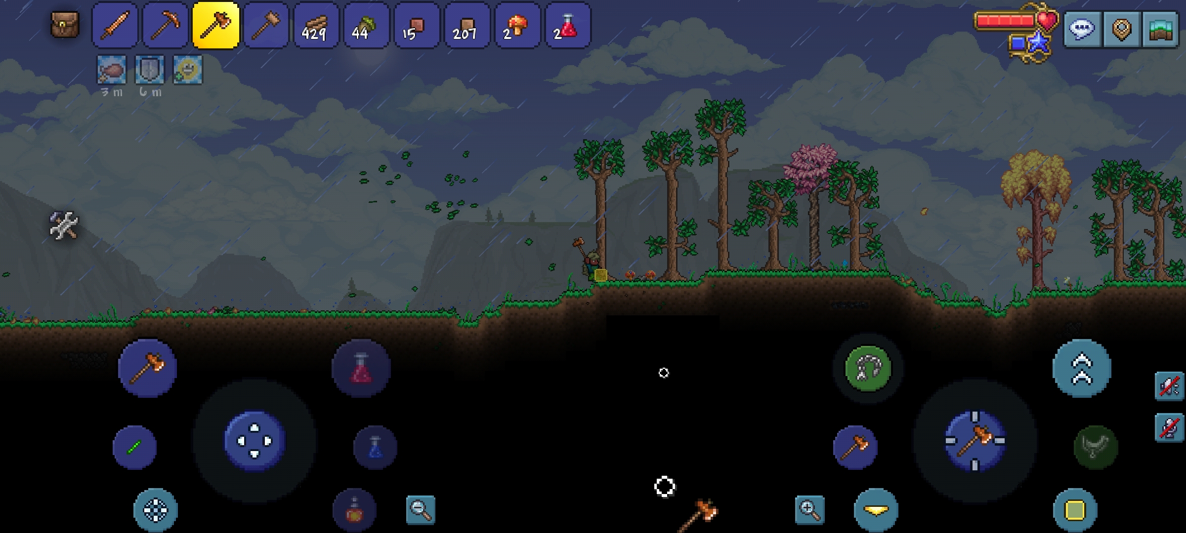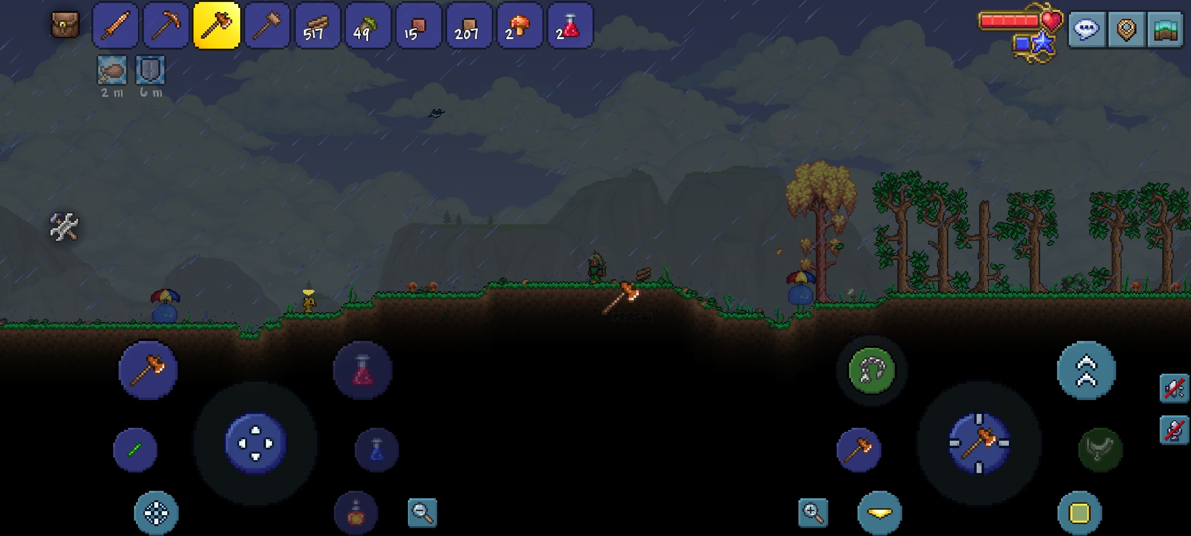 呃…好吧!我承认雷雨天浇灭了我砍树的心情况且我现在手无寸铁,毕竟雨天的怪物还是很强大的 天上飞的鱼地上跑的史甚至还有…呃…水里游的…金鱼?
