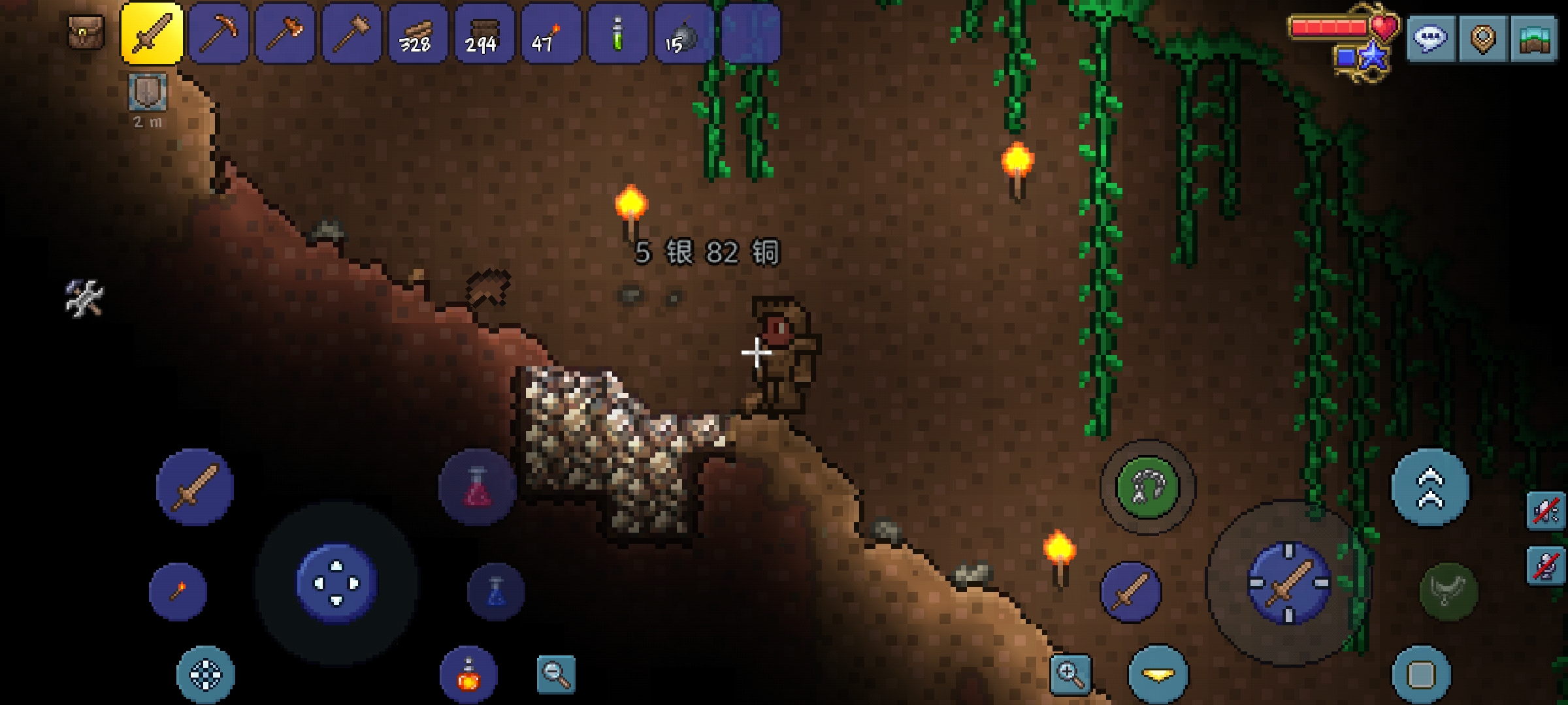 ohhhhh!!!双喜临门!生命水晶还有金矿!存在感极低的锡我们真是太幸运了!生命水晶可以为我们提供20点最大生命值!这样我们前期就有挑战BOSS的资本了!