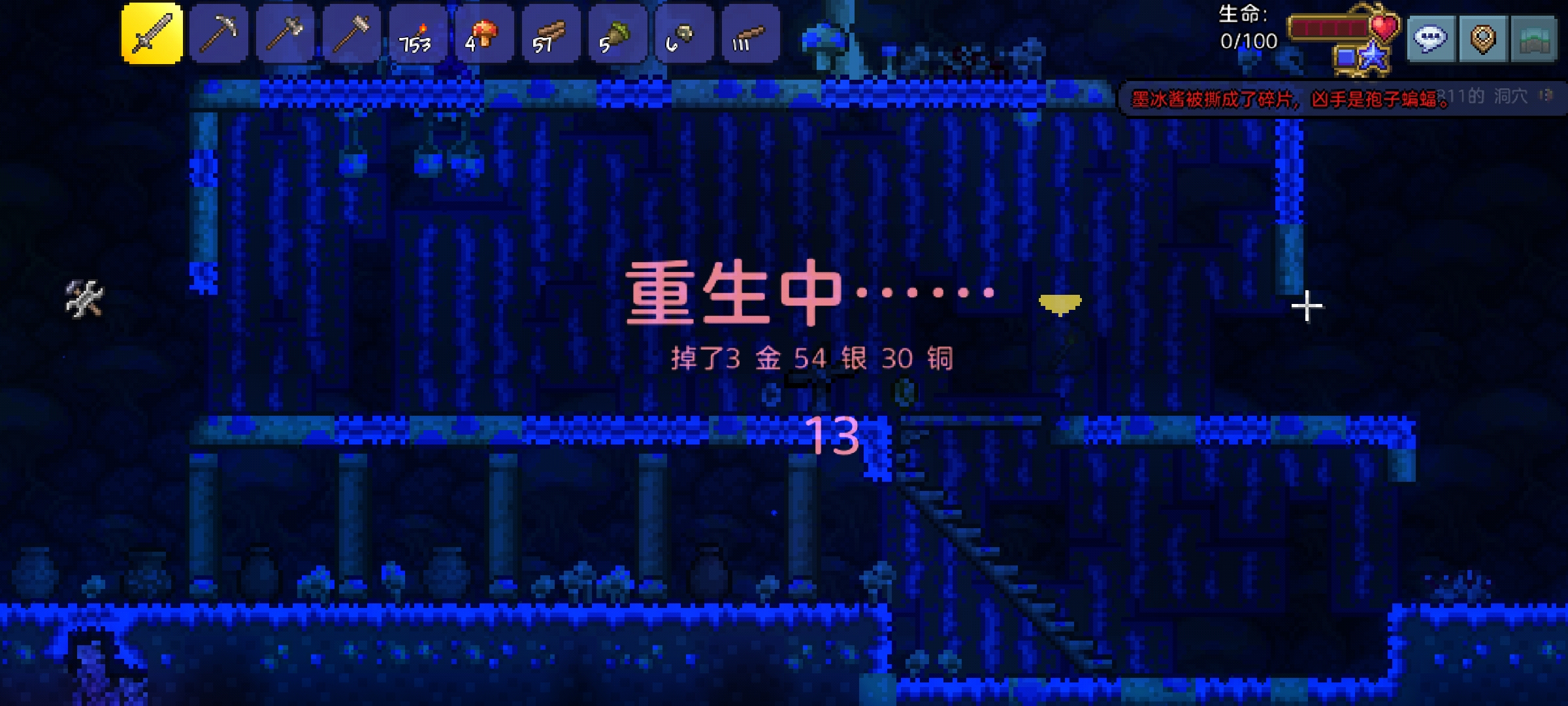 另外,如果我们身处冰原地带的水里的话会有一个冷冻buff,它会减慢我们的移动跳跃速度