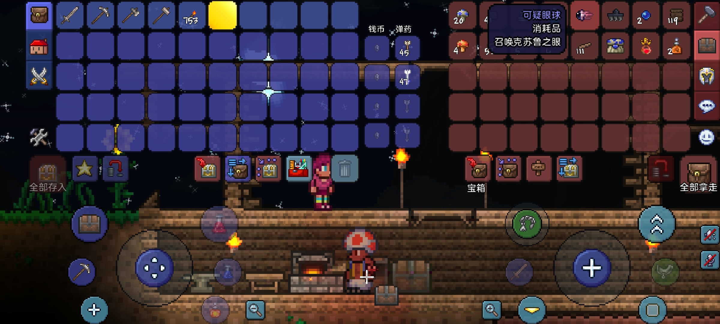 在夜晚刷怪的中途,我可以多留意一下眼球怪掉落的晶状体,这玩意可以制作BOSS:克苏鲁之眼的召唤物还可以做一个炫酷的小眼镜,晶状体这玩意还有一个变体叫做黑色晶状体,它的掉落概率很低它可以制作后期召唤师武器双子魔眼法杖,也可以做一个超级无敌炫酷的墨镜
