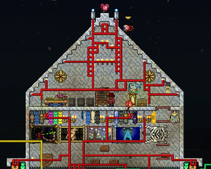 看点:可以在房中小憩,还有为纪念享年36岁的Leinfors的牌。他生前是泰拉瑞亚的质量保障成员之一 、测试人员、1.4版本的低层逻辑,他对泰拉瑞亚的贡献是不可替代的。